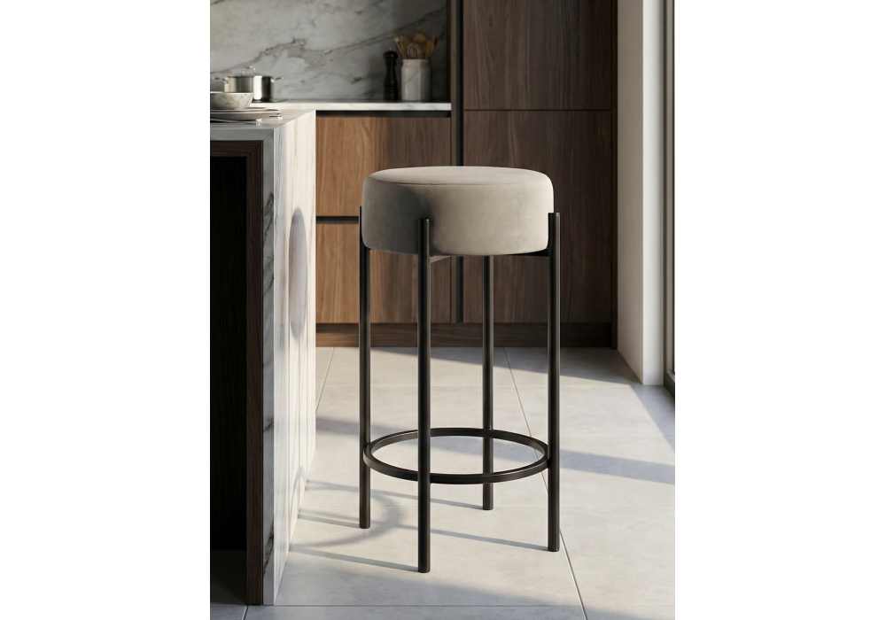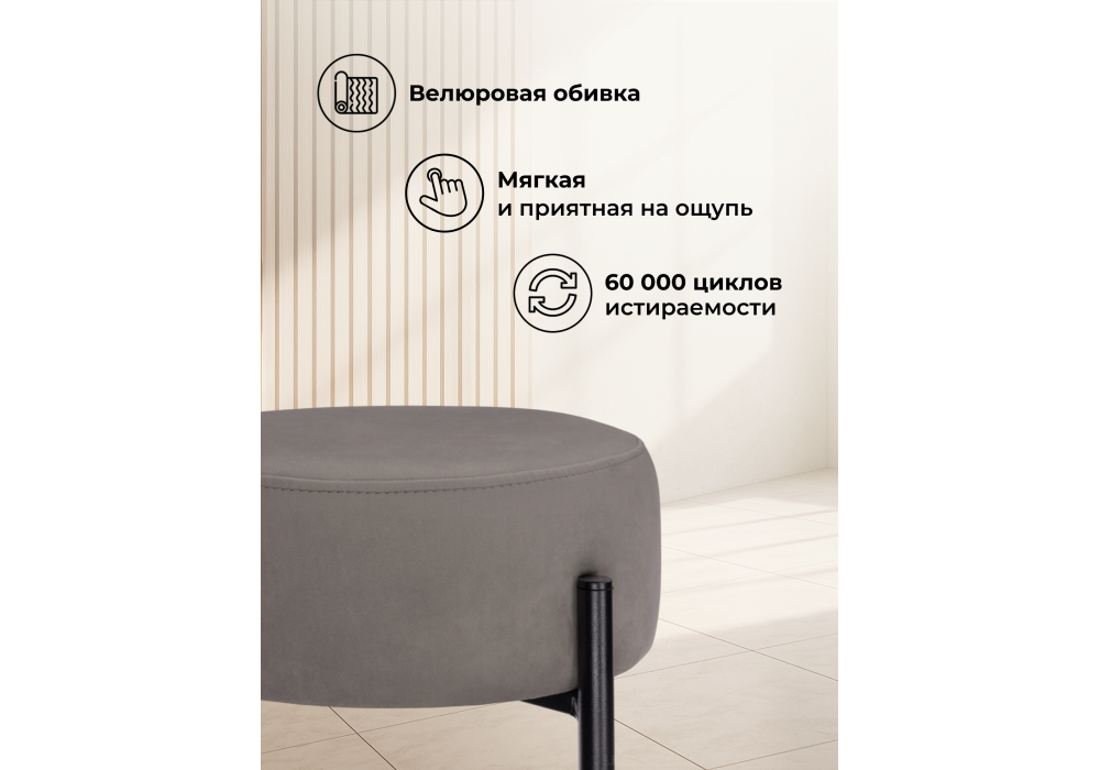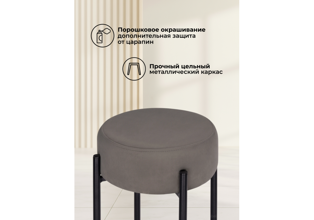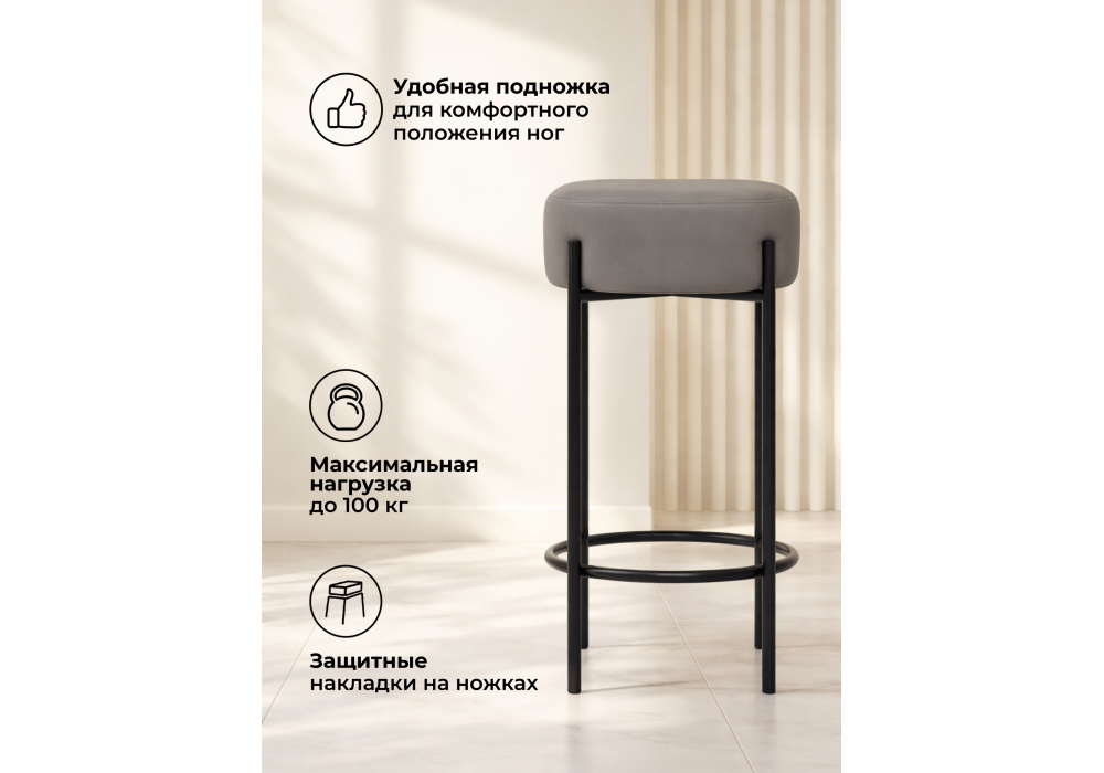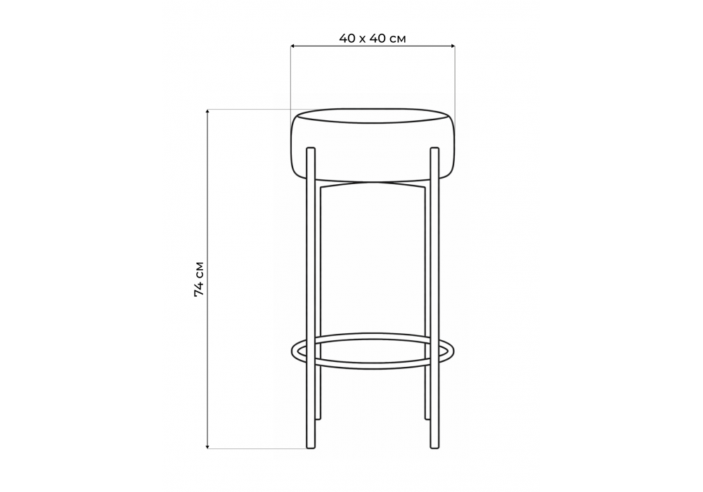 Высота подножки: 17 см. Материал каркаса - металл; Материал сиденья - велюр; Материал обивки - велюр; Цвет ножек - черный; Ширина - 40; Глубина - 40; Высота - 74; Ширина сиденья - 37; Глубина сиденья - 37; Высота сиденья - 74;