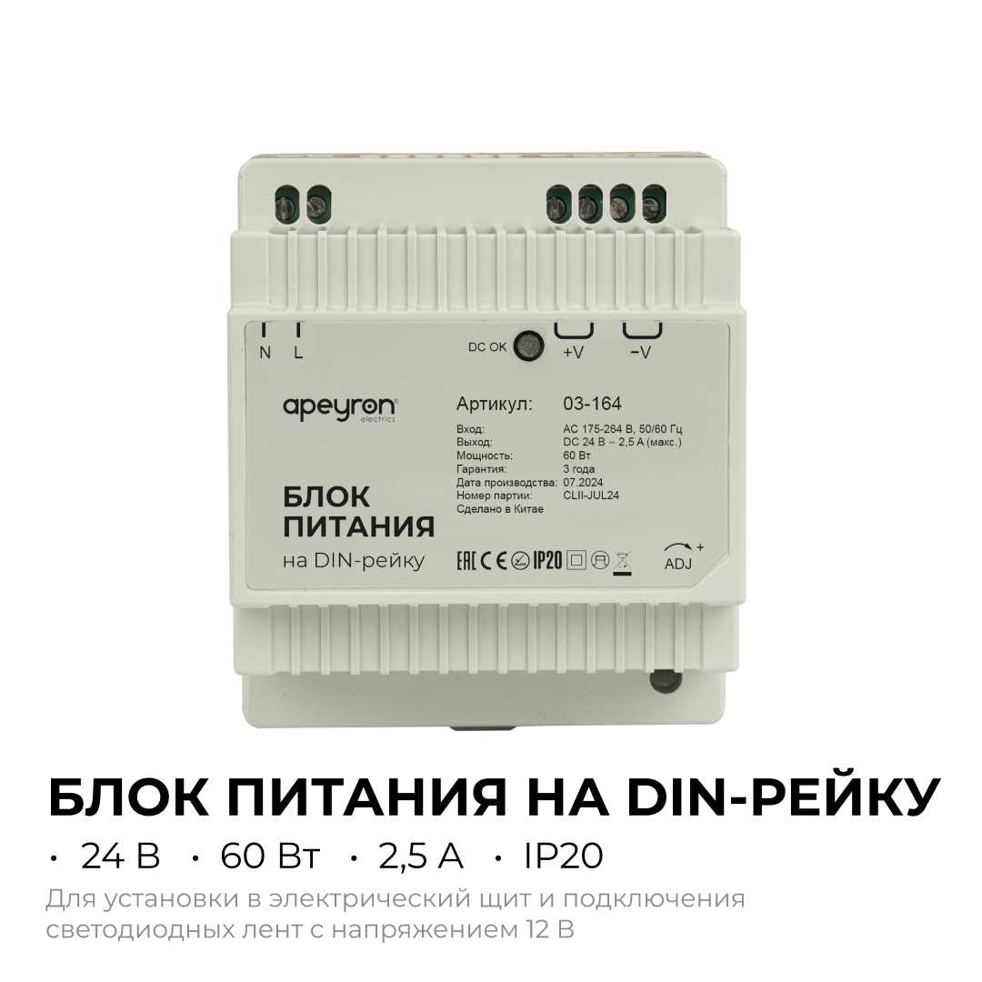 Купить "Блок питания на DIN рейку Apeyron 03-164"
