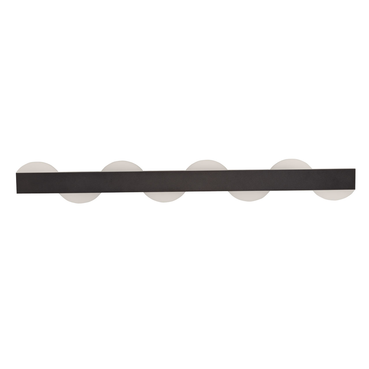 Металлическое основание потолочного светильника окрашено в черный цвет. Светодиодные источники света закрыты матовым акрилом. Светильник декорирован элементами из матового акрила.