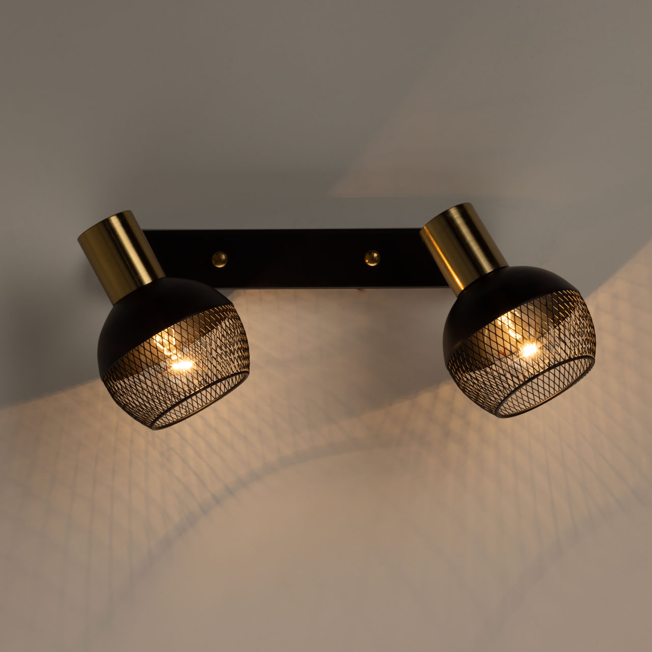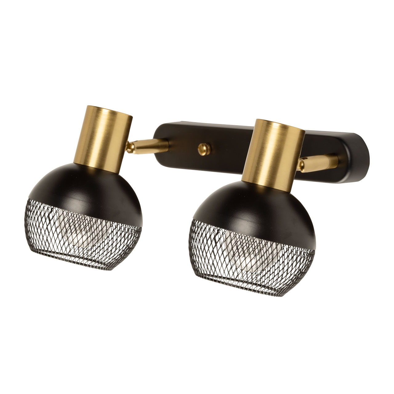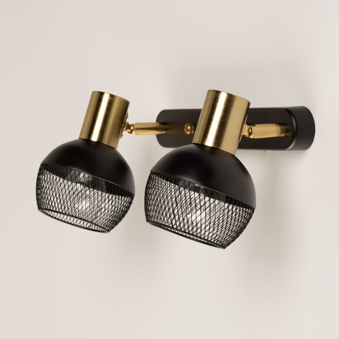 Металлическое основание настенного бра и плафоны окрашены в черный цвет. Отдельные элементы основания гальванизированы в цвет латуни.
