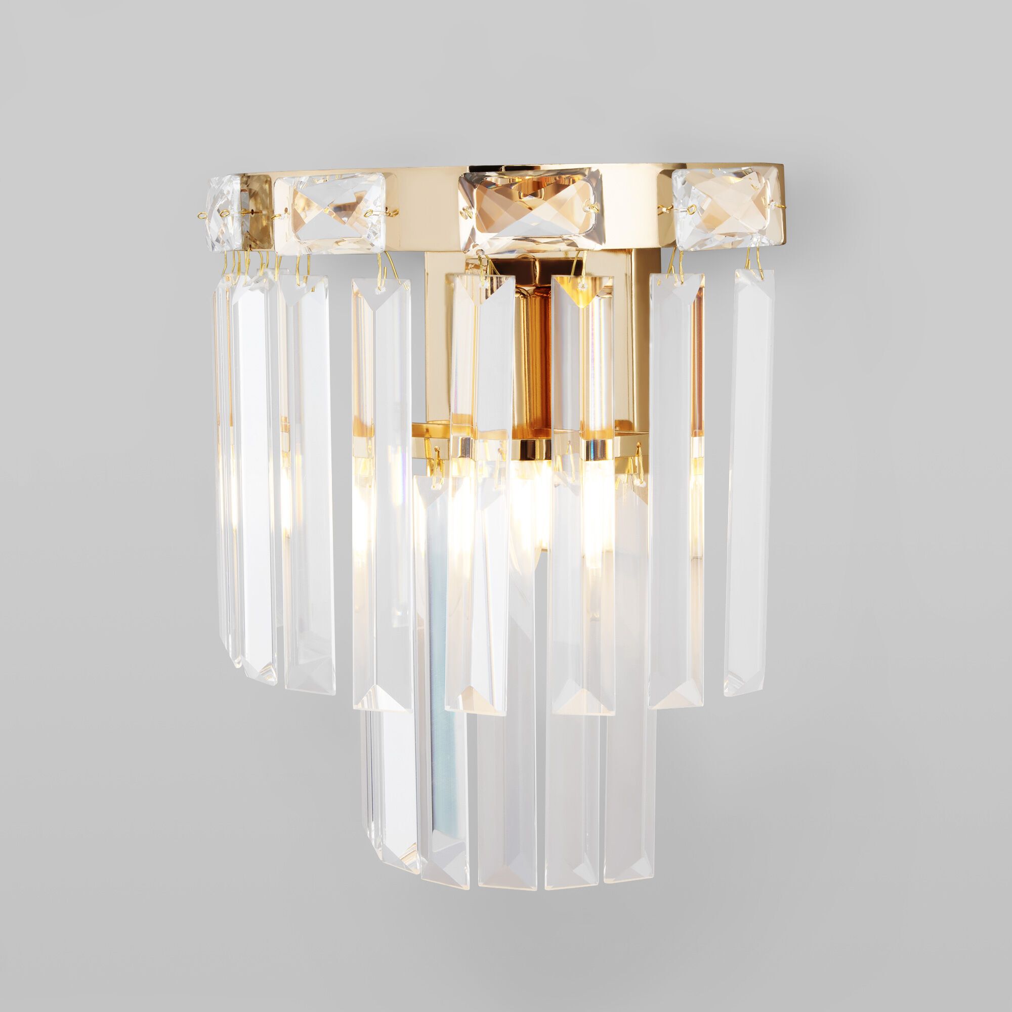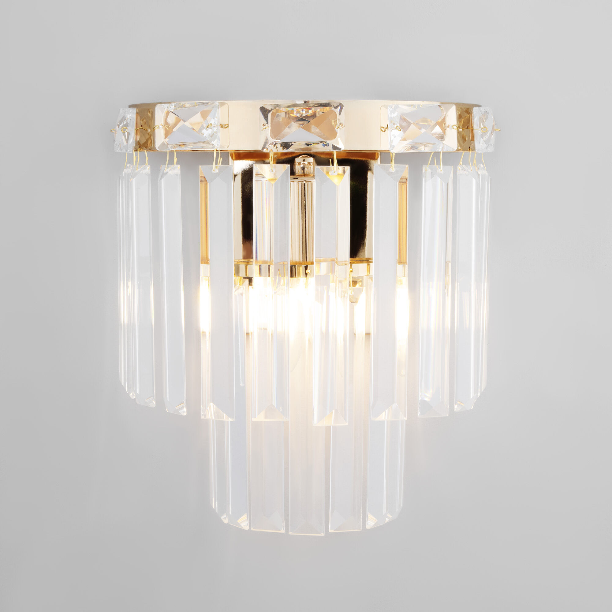 Бра с хрустальным декором 10130/1 из серии Elegante станет ярким световым акцентом в классических интерьерах и создаст качественное освещение на площади 2 м². Изящные чаши подсвечников украшены хрустальными подвесками, которые искрятся в лучах света, наполняя помещение выразительным блеском.