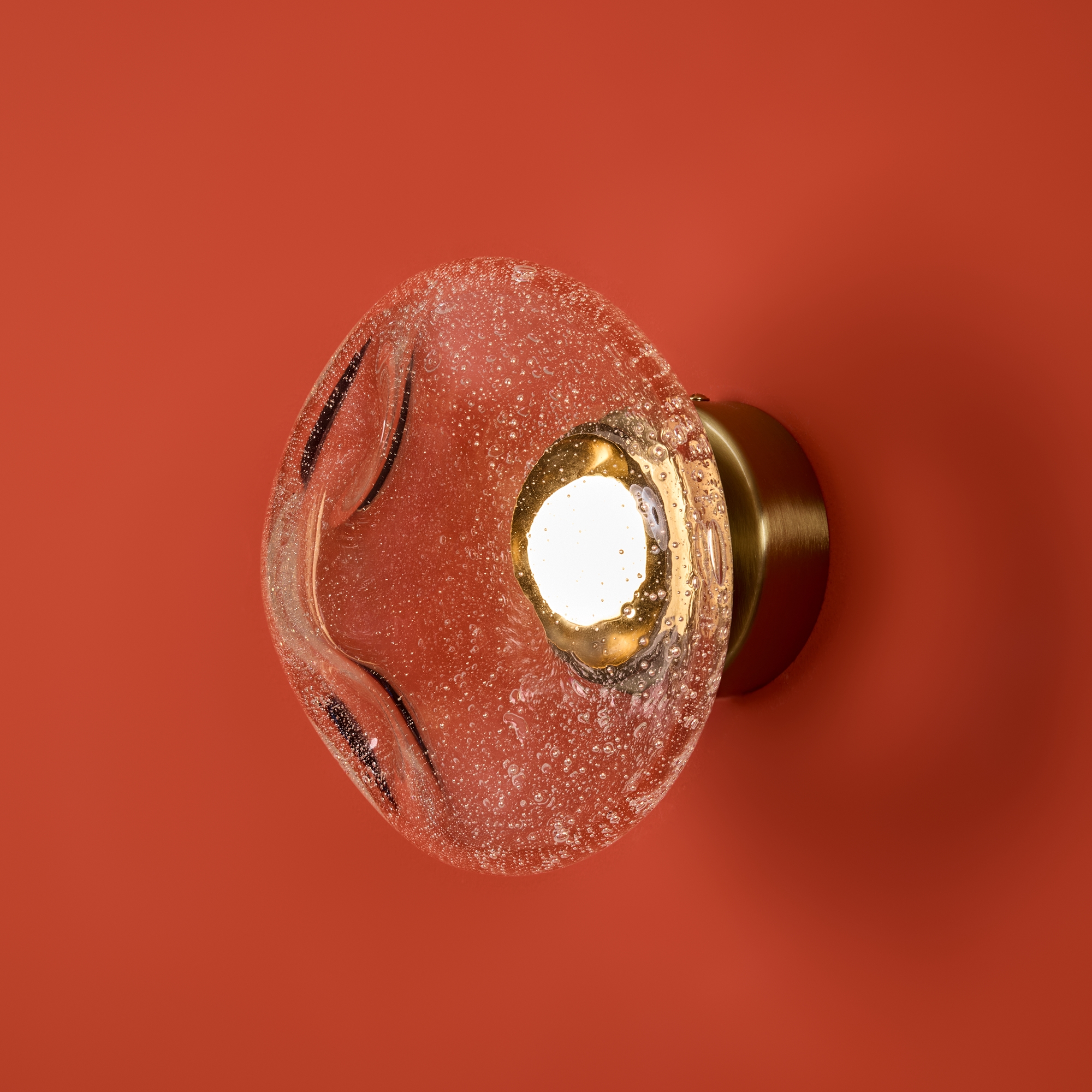 Арматура — металл. Стеклянные плафоны с пузырьками в трёх цветах: дымчатый, прозрачный, янтарный. Интегрированный LED источник света 3000К, Ra 80, угол 180°. Высота регулируется.