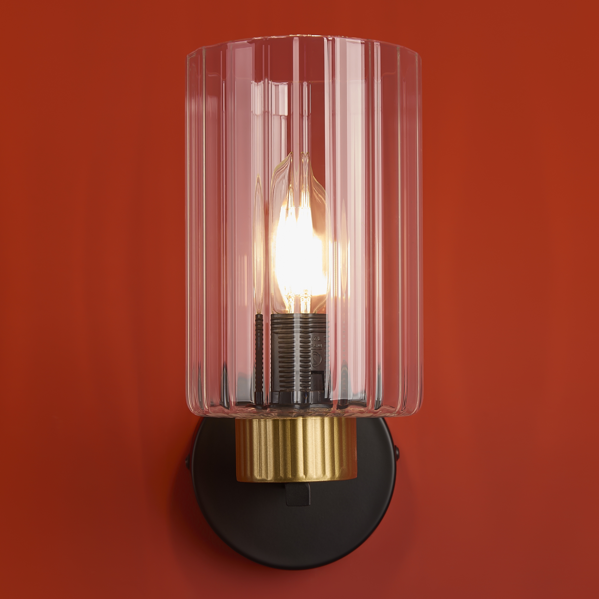Металлическая арматура чёрного матового цвета с латунными вставками. Прозрачные цилиндрические стеклянные абажуры. Лампы E14 (не включены). Трендовое сочетание для современных интерьеров.