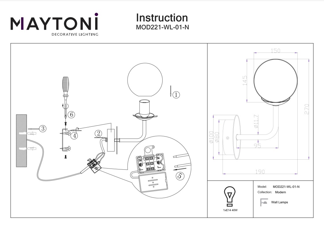 Бра Maytoni Erich MOD221-WL-01-N, входящая в коллекцию Modern, отлично подойдет для освещения пространства в гостиной, в спальне, на даче, в кабинете, оформленных в современном стиле или в стиле Хай-тек. Данный артикул имеет один плафон диаметром 15 см белого цвета в форме шара, выполненного из стекла и направленного вверх, а также матовую никелированную арматуру, при этом глубина расположения светильника от стены равна 19 см. Немецкий производитель Maytoni дает гарантию на свое изделие 2 года и рекомендует использовать для устройства энергосберегающие лампы или лампы накаливания с цоколем Е14 и мощностью 40 Вт, что позволяет осветить помещение площадью 2,2 кв. м. Технической особенностью этого осветительного прибора является возможность переключение режимов работы бра с помощью пульта Д/У . Способ крепления светильника к стене на планку позволяет быстро и просто осуществить монтаж. Стильный дизайн и матовая поверхность плафонов бра Maytoni Erich MOD221-WL-01-N делают ее особенным элементом декора, который украсит любое интерьерное пространство.