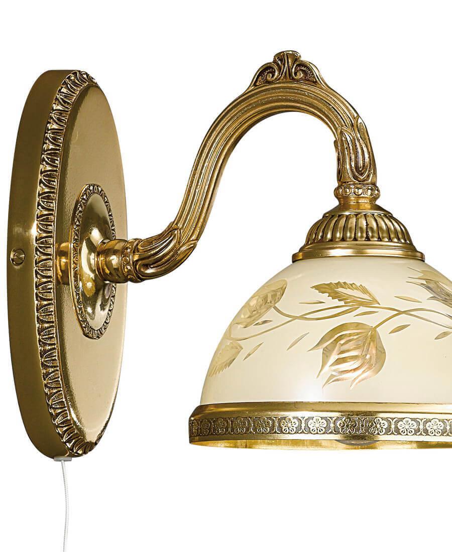 Бра Reccagni Angelo A 6308/1 Итальянского производсва – лучшее соотношение цена-качество. Этот светильник Классического стиля хорошо подойдет Для спальни и придаст помещению мягкий и приятный свет. Плафоны белые из стекла. Арматура золотая из металла. Кол-во ламп - 1шт. Общая мощность 60W