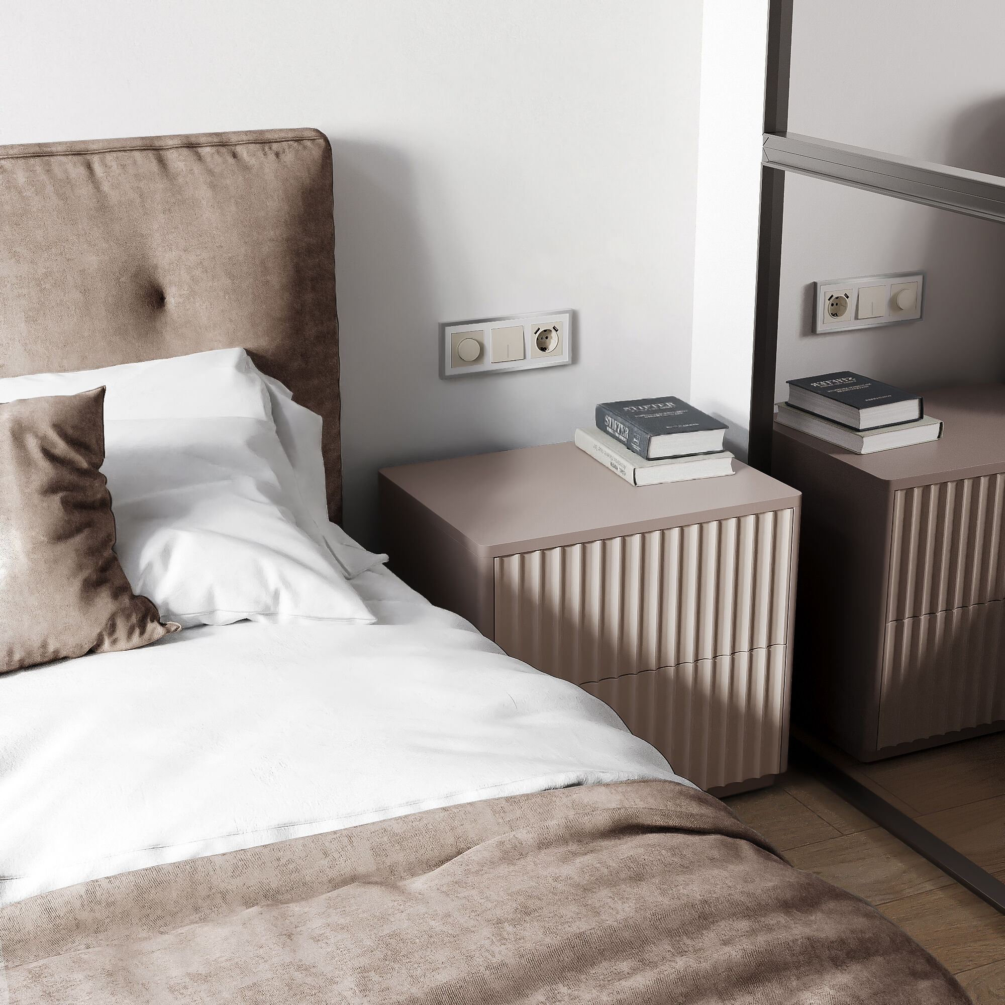 Диммер подключается в разрыв цепи как обычный выключатель или по схеме проходного выключателя. Вы можете заменить обычный или проходной выключатель диммером Werkel, не перекладывая проводку.