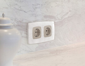 Лицевая панель для электрической розетки с заземлением со шторками Ambrella Volt Quant OMEGA OP4070