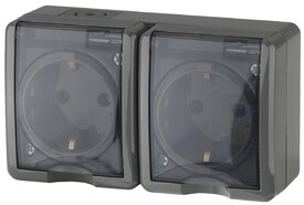Розетка двойная влагозащищенная с заземлением с защитной крышкой и шторками Werkel черный W1172208 4690389178092