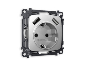 Лицевая панель для розетки с заземлением со шторками 2USB A+A Ambrella Volt Quant OMEGA OP4090