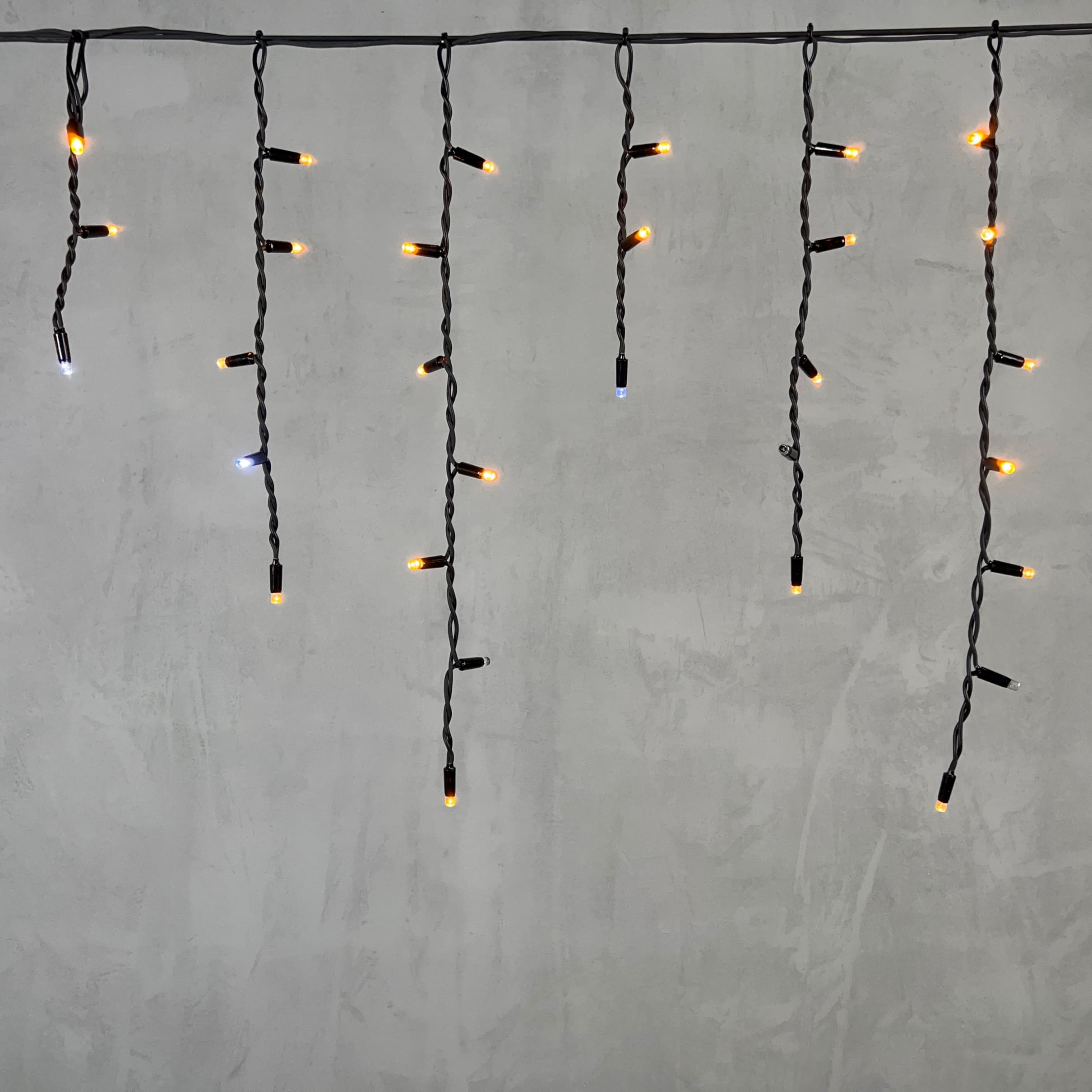 Гирлянда Бахрома 3, 1 x 0, 5 м Жёлтая с Мерцанием Белого Диода 220В, 120 LED, Провод Черный Каучук, IP65 LTC LL120BLW-1-2Y в Томск