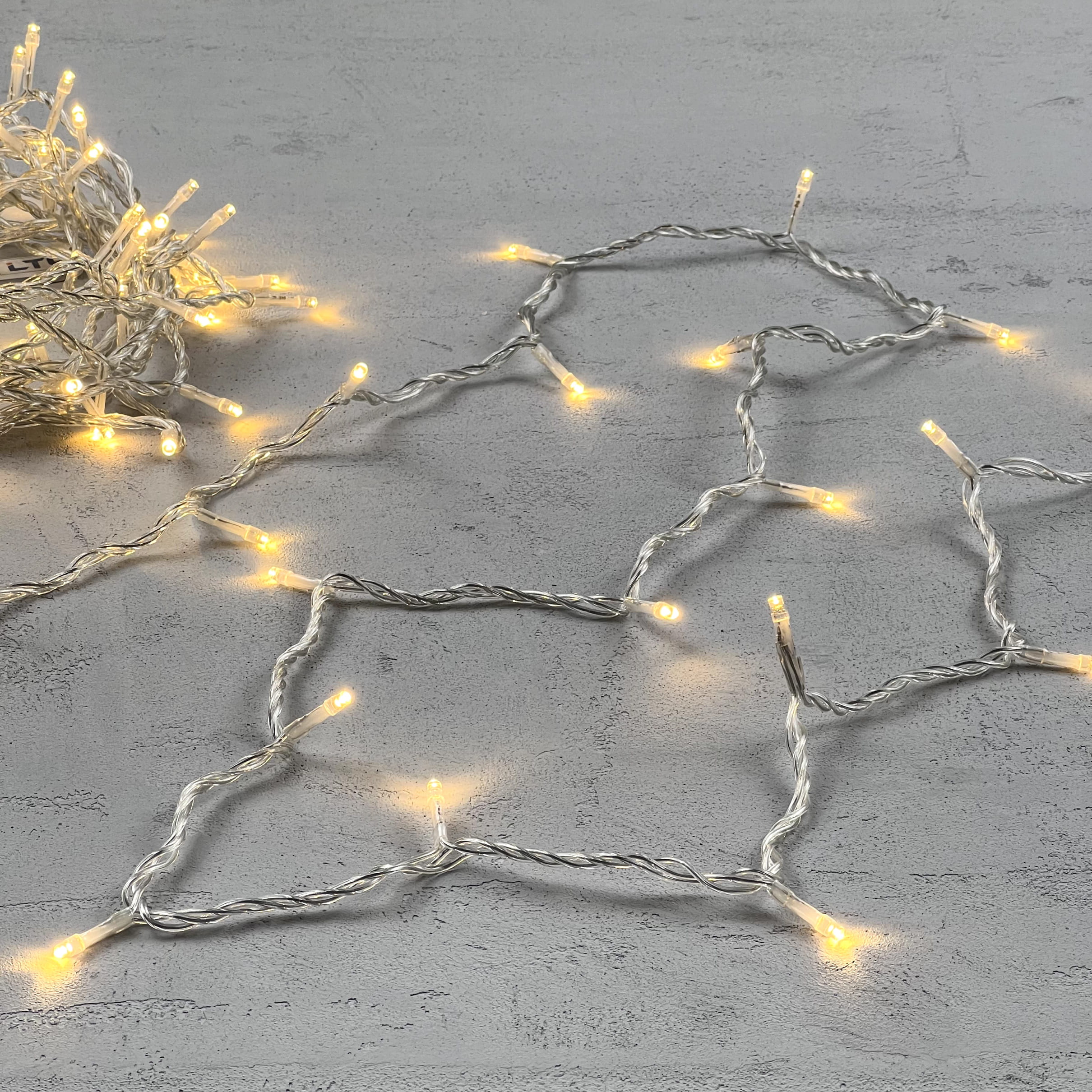 Купить "Гирлянда Нить 10м Тепло-Белая 24В, 100 LED, Провод Прозрачный ПВХ, IP54 LTC PST100-10-1WW"