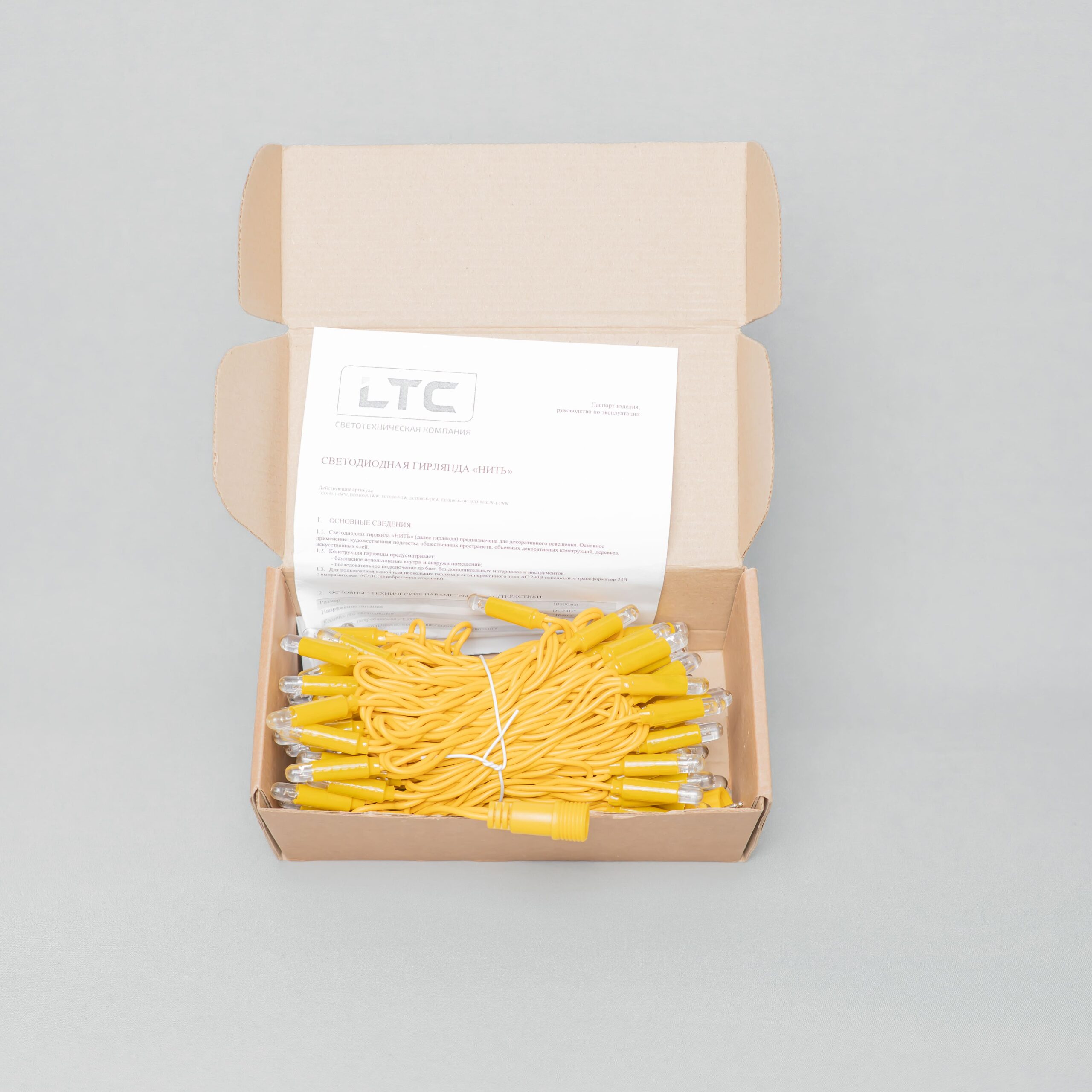 Купить "Гирлянда Нить с Колпачком 10м Тепло-Белая 24В, 100 LED, Провод Золотой ПВХ, IP65 LTC PST100CAP-12-1WW"