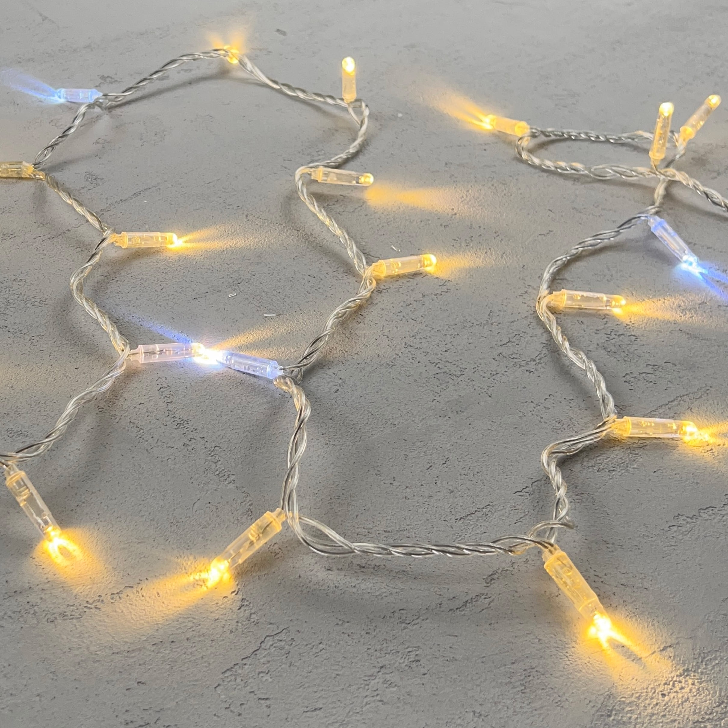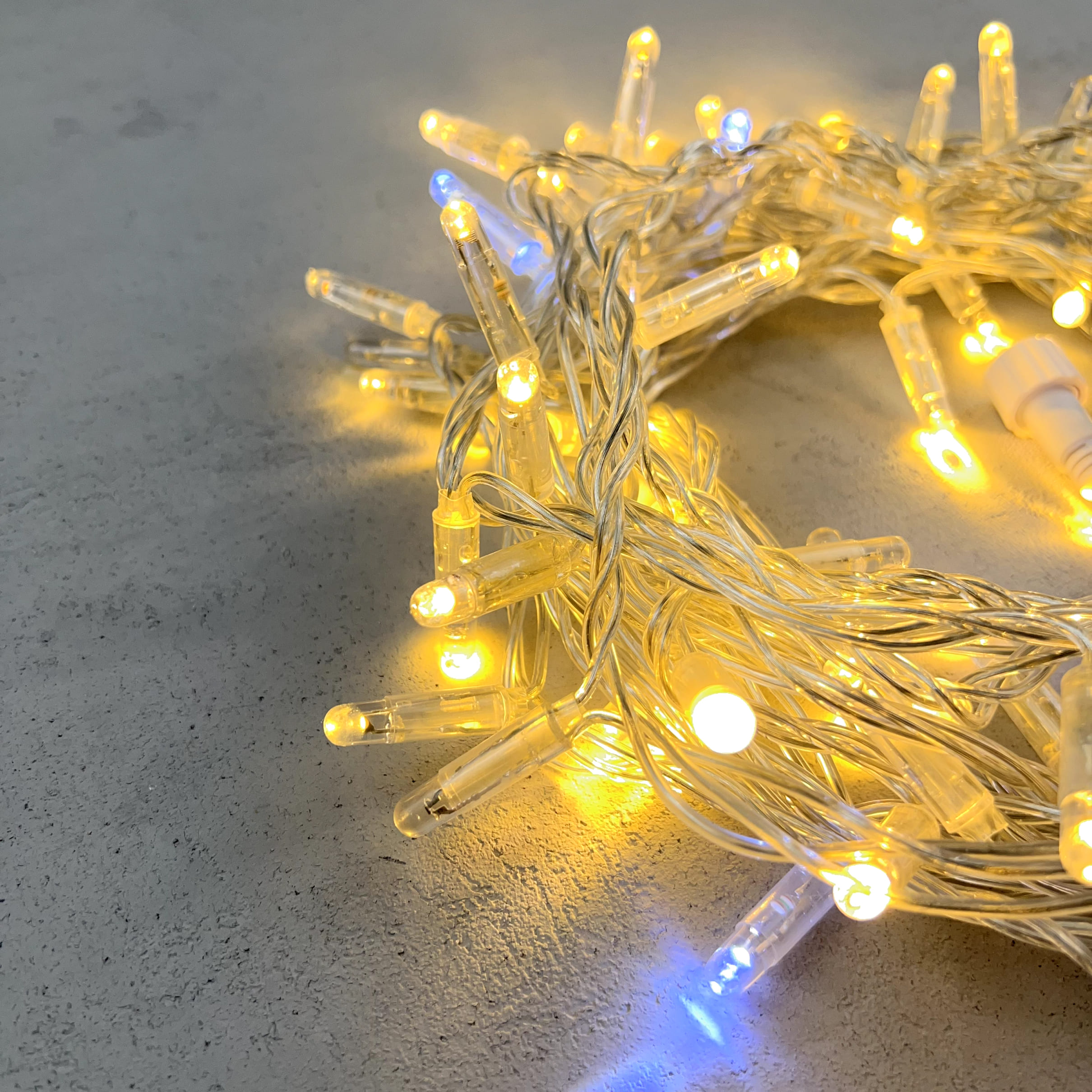Купить "Гирлянда Нить с Колпачком 10м Тепло-Белая с Мерцанием Белого Диода 24В, 100 LED, Провод Прозрачный ПВХ, IP65 LTC PST100BLWCAP-10-1WW"
