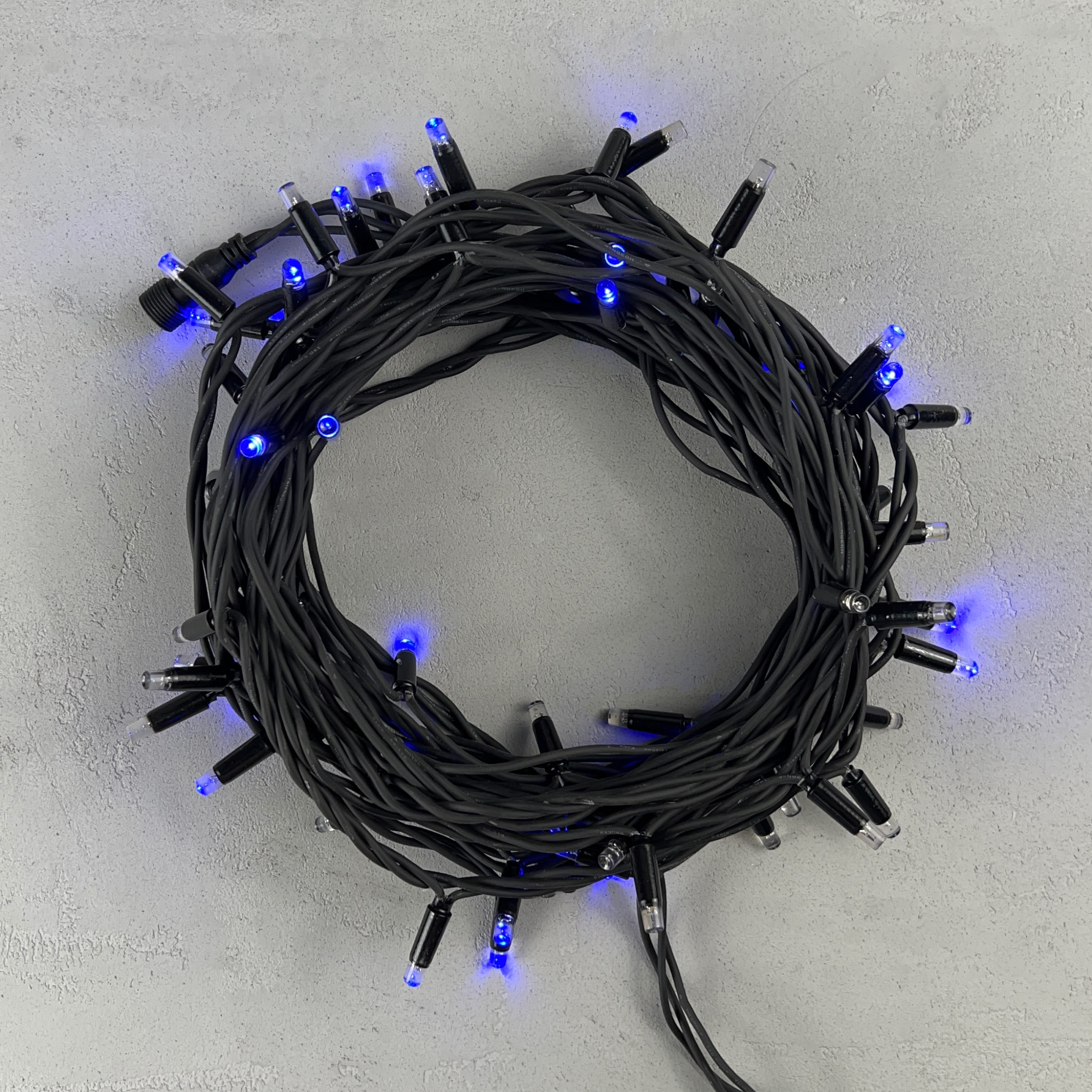 Купить "Гирлянда Нить 10м Синяя с Мерцанием Каждого Диода 220В, 75 LED, Провод Черный Каучук, IP65 LTC LL75ABL-1-2B"