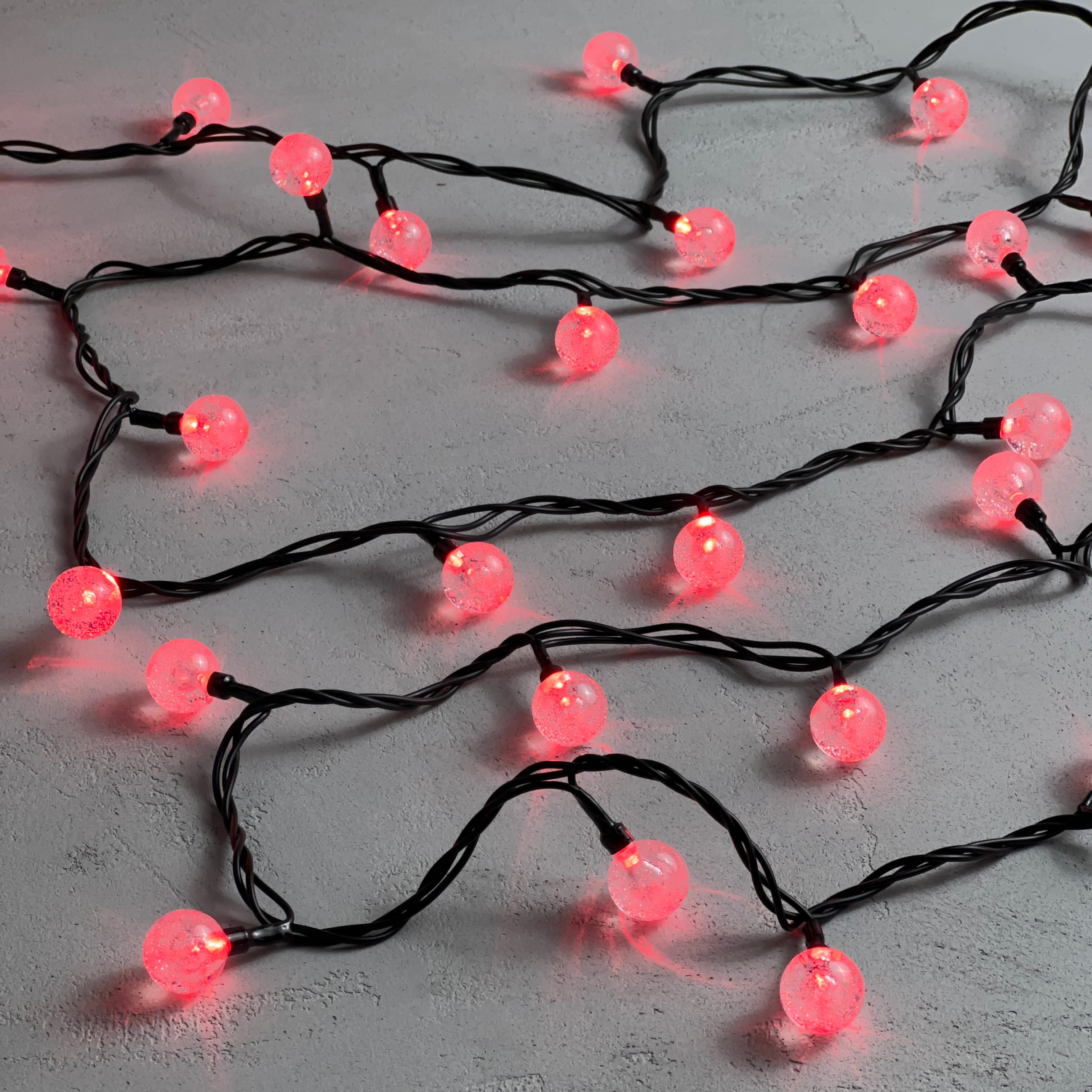 Купить "Гирлянда «Шарики» 10м Красная 220В, Диаметр Шарика 23мм, 100 LED, Провод Черный Каучук 2,3мм, IP54 LTC PCS-100B-R"