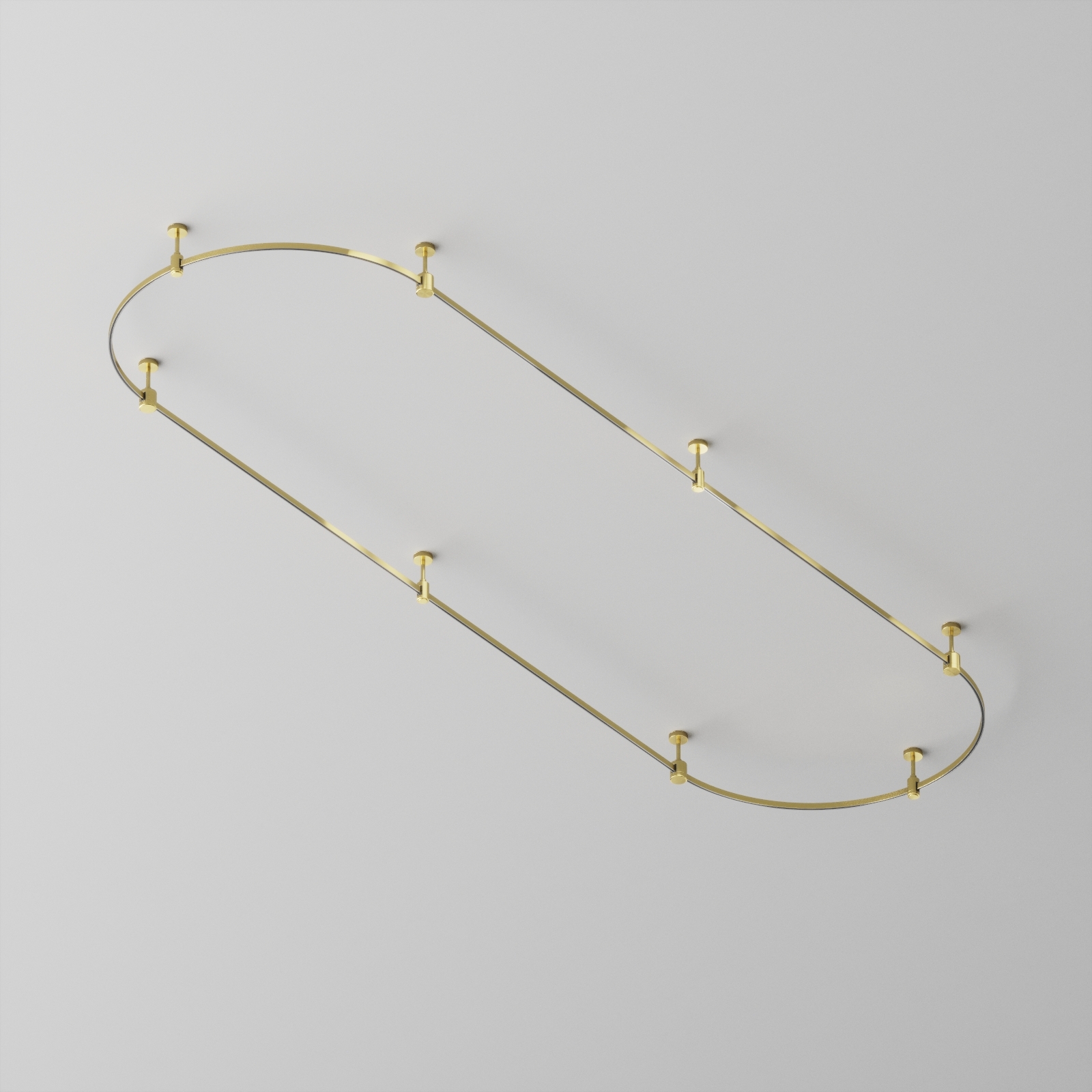 Подвесная конструкция системы Flarity овальной формы с потолочными креплениями . Светильники и блоки питания приобретаются отдельно,