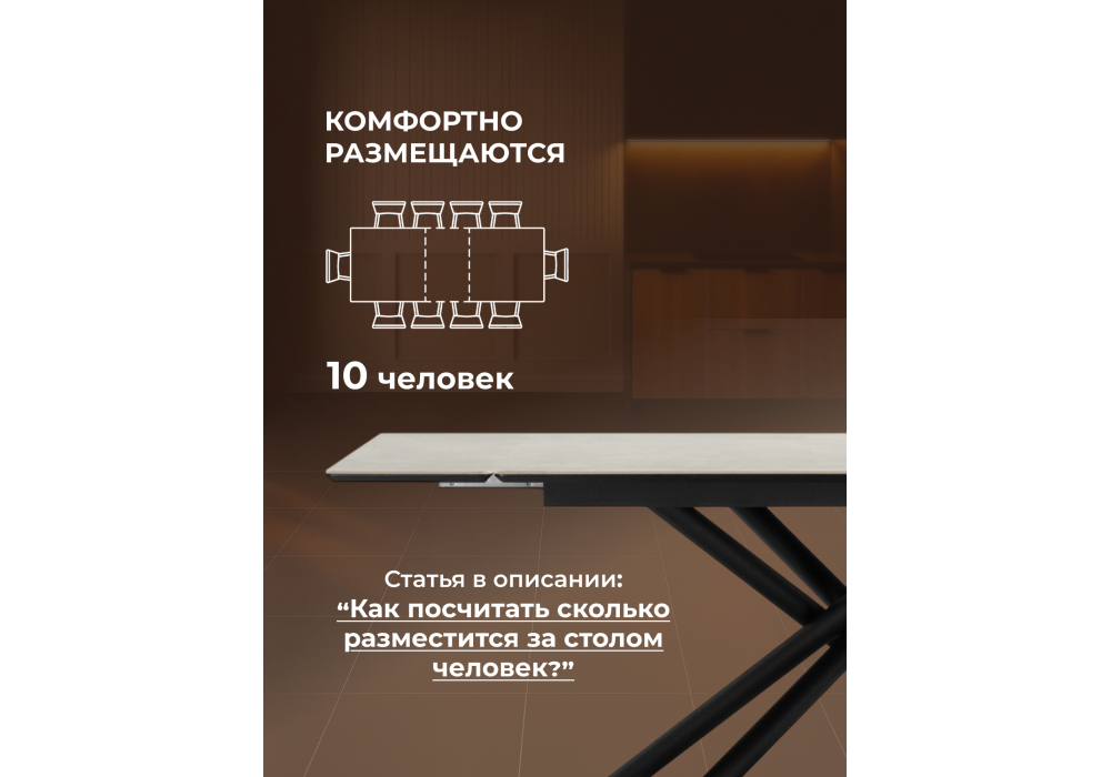 Материал каркаса - металл; Материал столешницы - Керамика; Цвет ножек - черный; Ширина - 80; Высота - 75; Длина стола в разложенном виде - 200; Длина - 140;