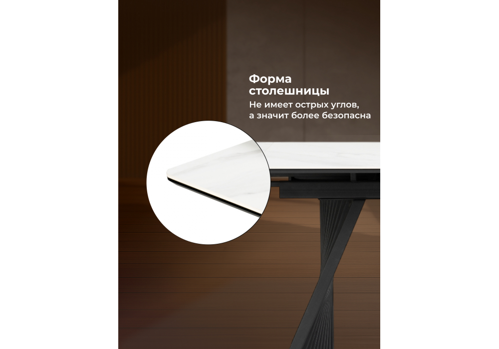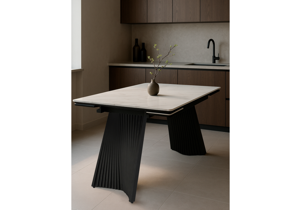 Материал каркаса - металл; Материал столешницы - Керамика; Цвет ножек - черный; Ширина - 89; Высота - 75; Длина стола в разложенном виде - 220; Длина - 160;
