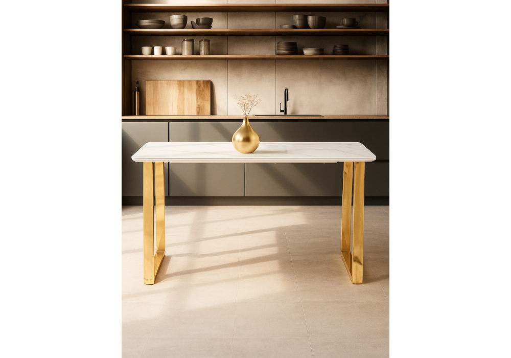 Керамический стол Woodville Селена 2 140х80х77 белый мрамор / золото 571412 в Томск