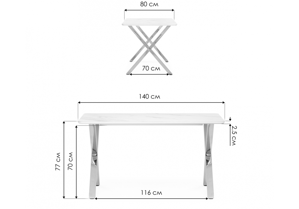 Материал каркаса - Металл; Материал ножек - Металл; Материал столешницы - Керамика; Цвет каркаса - Золотой; Цвет ножек - Золотой; Цвет столешницы - Черный; Ширина - 80; Высота - 77; Длина - 140;