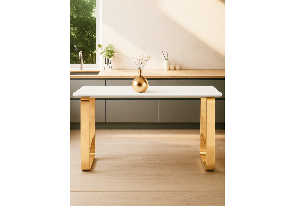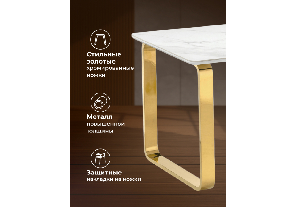 Керамический стол Woodville Селена 4 140х80х77 белый мрамор / золото 571414 в Томск