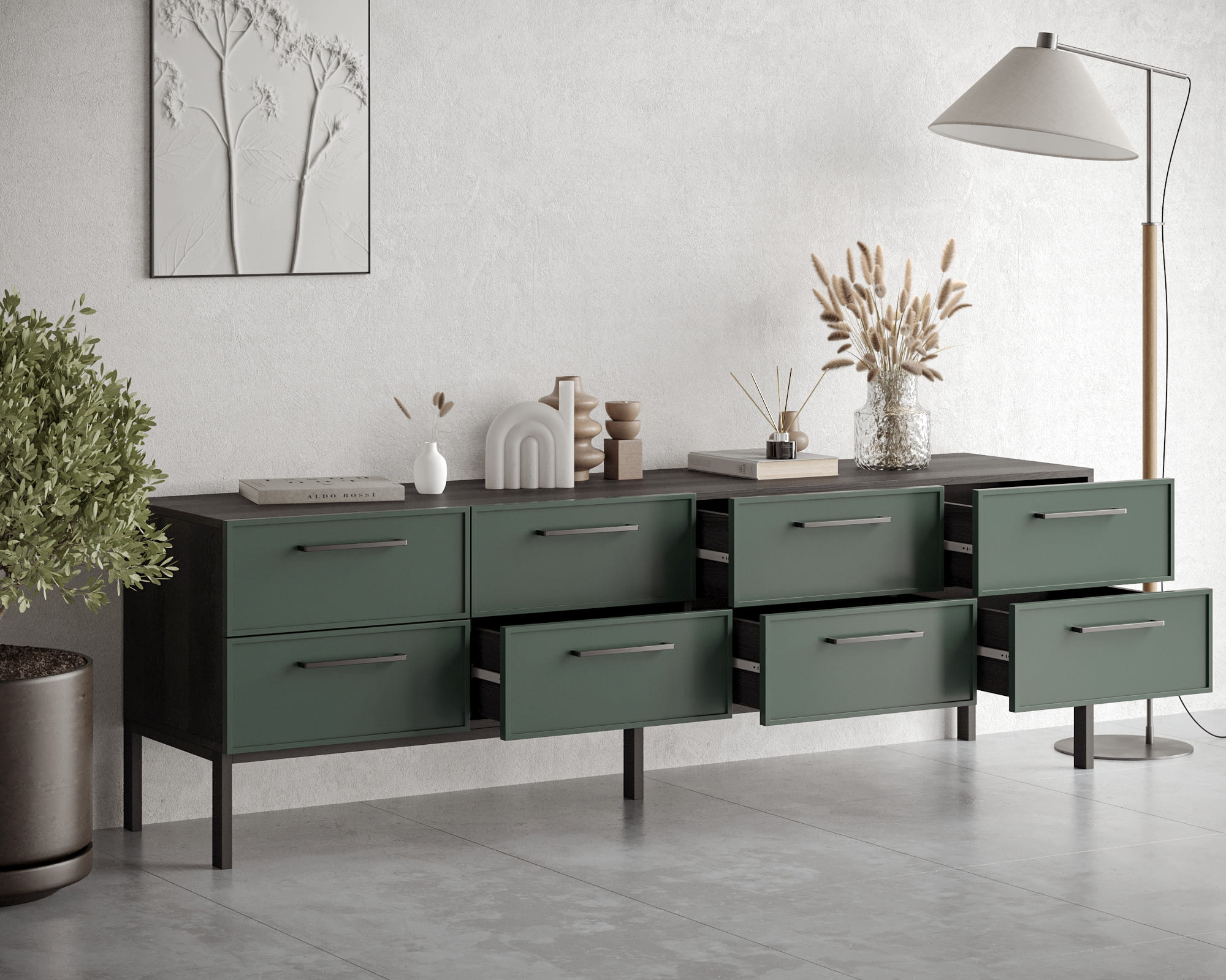 Купить "Комод с восемью ящиками Николь цвет Зеленый NEM03G"