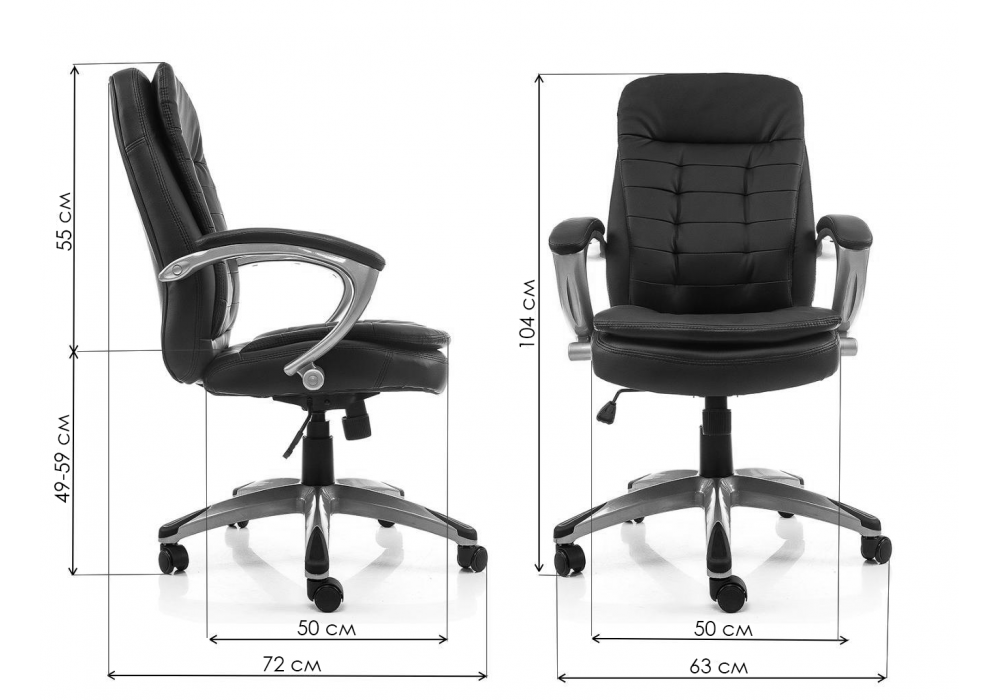 Диаметр крестовины: 68 см. Материал каркаса - пластик; Материал сиденья - экокожа; Материал обивки - экокожа; Ширина - 63; Глубина - 72; Высота - 104; Ширина сиденья - 50; Глубина сиденья - 50; Высота сиденья - 49; Высота максимальная - 114;