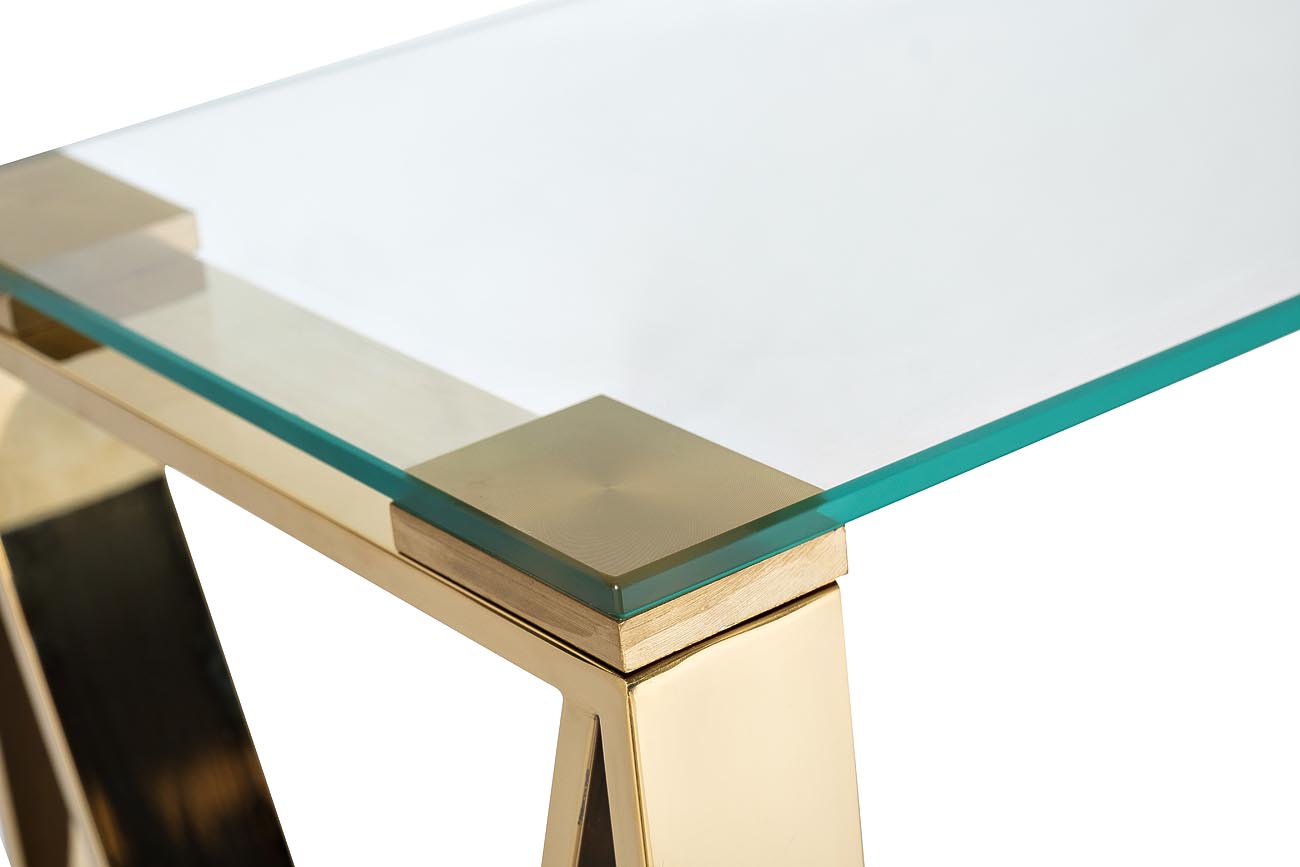 Ищете, чем украсить гостиную или прихожую? Оригинальная и стильная консоль золотого цвета достойно займет пустующее место. В простоте конструкции заключены ее элегантность и эстетичность. Данная консоль со стеклянной столешницей подходит для всех интерьер...