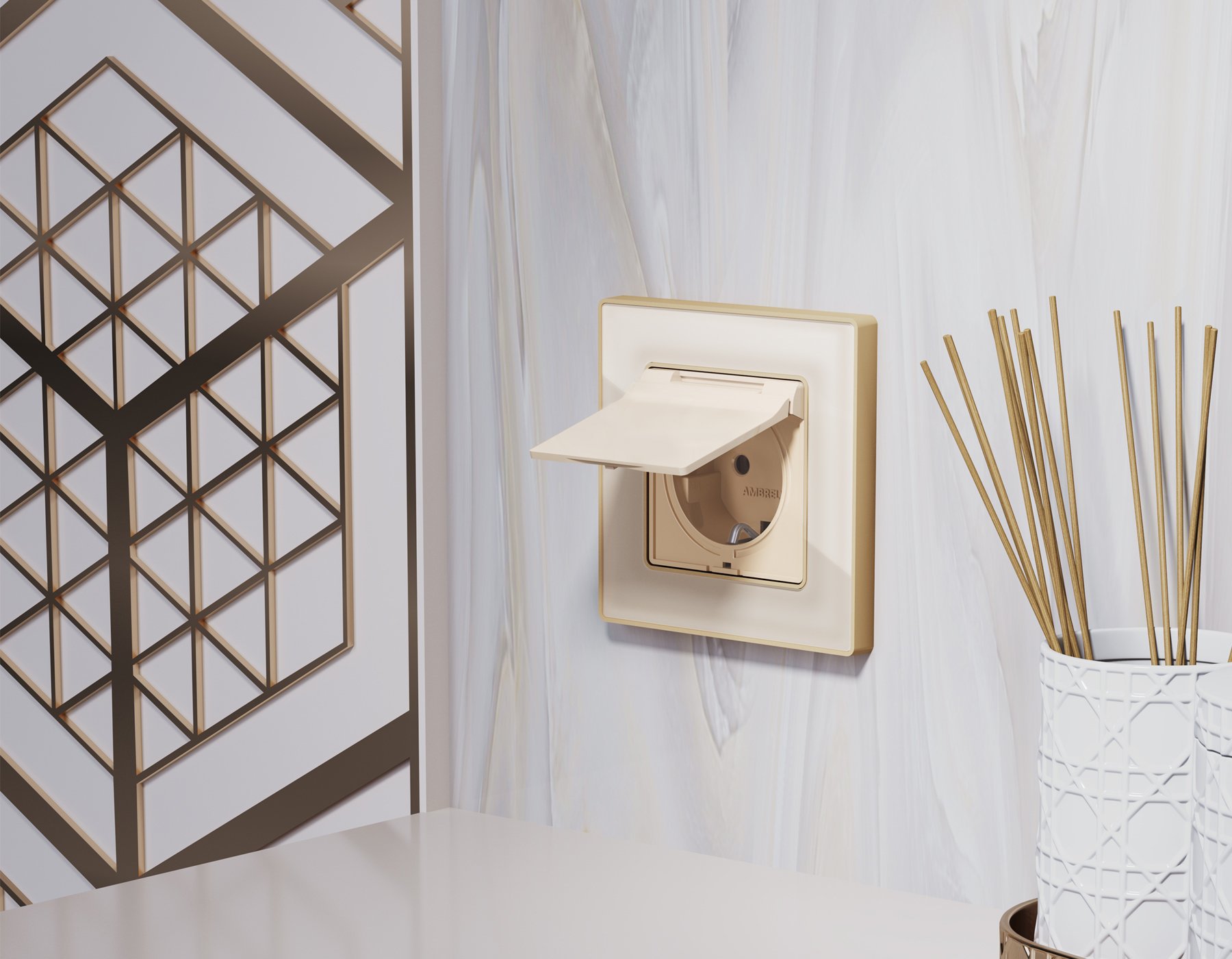 Купить "Лицевая панель для электрической розетки с/з со шторками IP44 Ambrella Volt Quant ALFA AP3280"