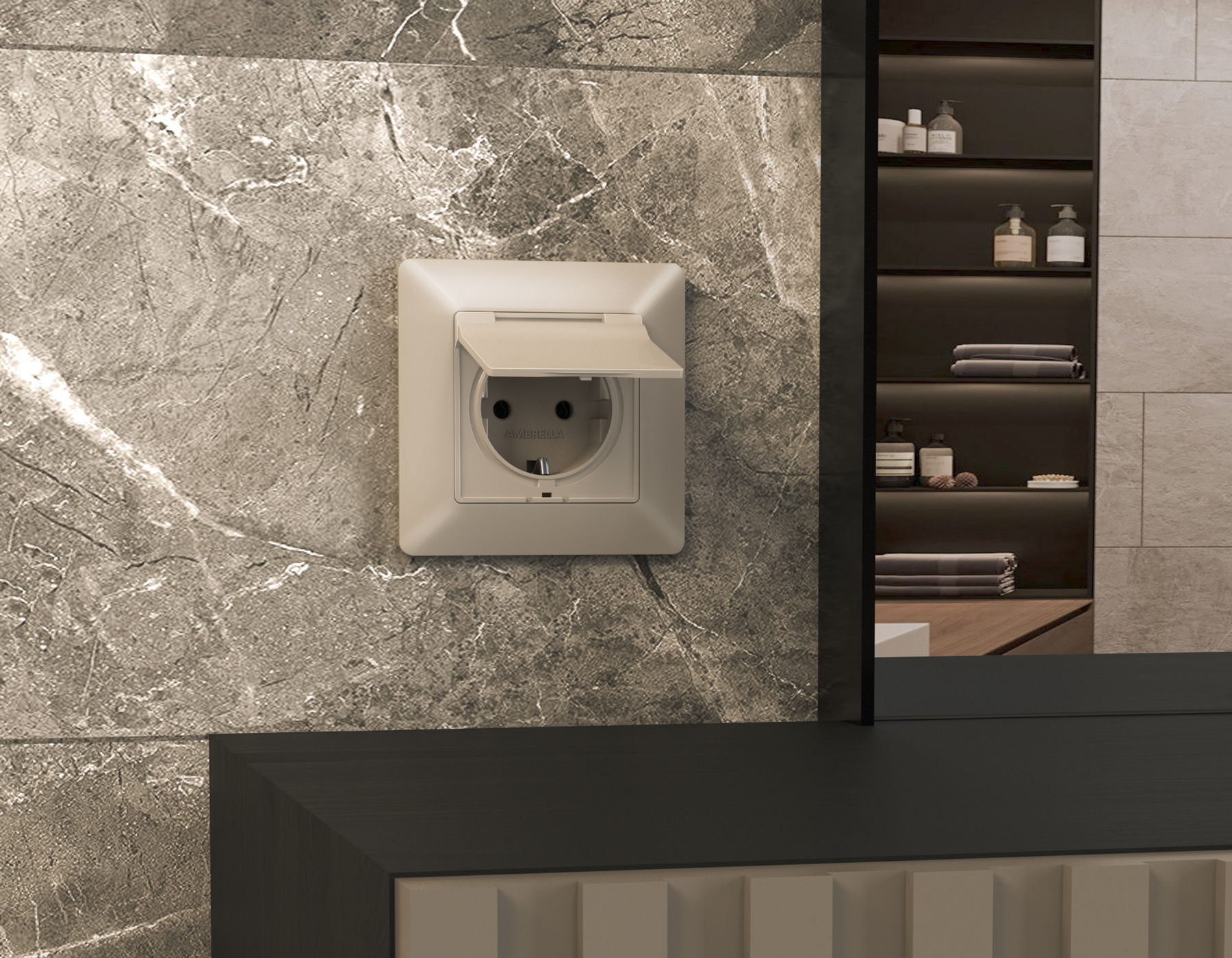 Купить "Лицевая панель для электрической розетки с/з со шторками IP44 Ambrella Volt Quant ALFA AP3680"