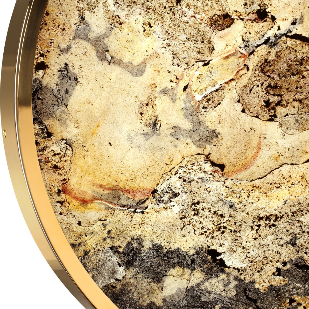 Наряду с моделями с лампой Е27 в линии Bergi есть светодиодные светильники — настенно-потолочные светильники диаметром 300,400,500,600мм, бра, подвес с рассеивателем из натурального природного материала — stone flake — в переводе «каменные хлопья». Тончайший срез (слой) каменной породы наносится на пластиковую подложку для придания формы плафону. Уникальность этого материала в том, что сохраняется красивая природная структура камня с ее неровностями и наслоениями, поэтому поверхность слегка шероховатая. В разных цветовых температурах LED цвет плафона имеет разный оттенок и каждый может выбрать ту цветовую температуру, которая подходит для интерьера. Для удобства выбора цветовой температуры в светильниках есть переключатель с выбором 3000К–4000К–6000К. Светодиодный подвес линии Bergi оснащен шарниром, который позволяет фиксировать различный наклон плафона и создавать красивые композиции.Глянцевый отблеск золотого цвета арматуры придает особый шик коллекции Bergi gold и позволяет разместить светильники в люкс