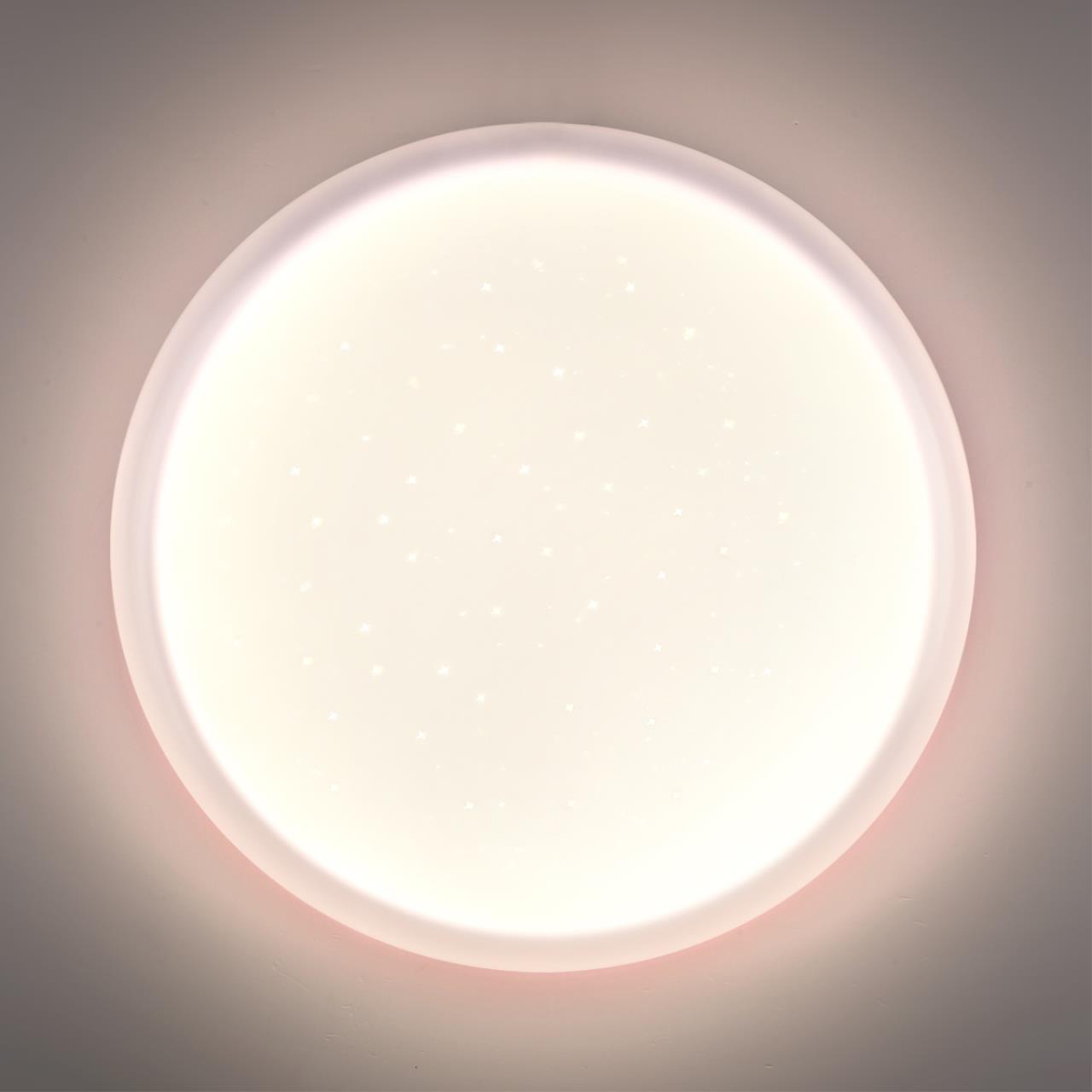 Светильник 7774/ELN линии JOLLY состоит из металлического основания (базы) и пластикового рассеивателя. Материал рассеивателя - высококачественный акрил белого цвета с глянцевой поверхностью, обеспечивающий светильнику равномерное рассеивание и хорошее светопропускание. Форма плафона: круглая, декорирована прозрачными точками, придающими включенному светильнику красивый эффект "звездного мерцания" и переливания. Степень защиты IP43 позволяет использовать светильник в определенных зонах влажных помещений. В комплект входит LED модуль с линзами, мощностью 76Вт, которая соответствует лампе накаливания 740Вт. А также переключатель температуры цвета (ССT) на драйвере, с помощью которого осуществляется изменение цветовой температуры 3000/4000/6000К и переход светильника в режим теплого/белого/холодного света. Для установки необходимого режима рекомендуется использовать удлиненный тонкий предмет типа небольшой отвертки. Данную модель 7774/ELN с быстрой доставкой спешите купить в магазине 220svet.ru