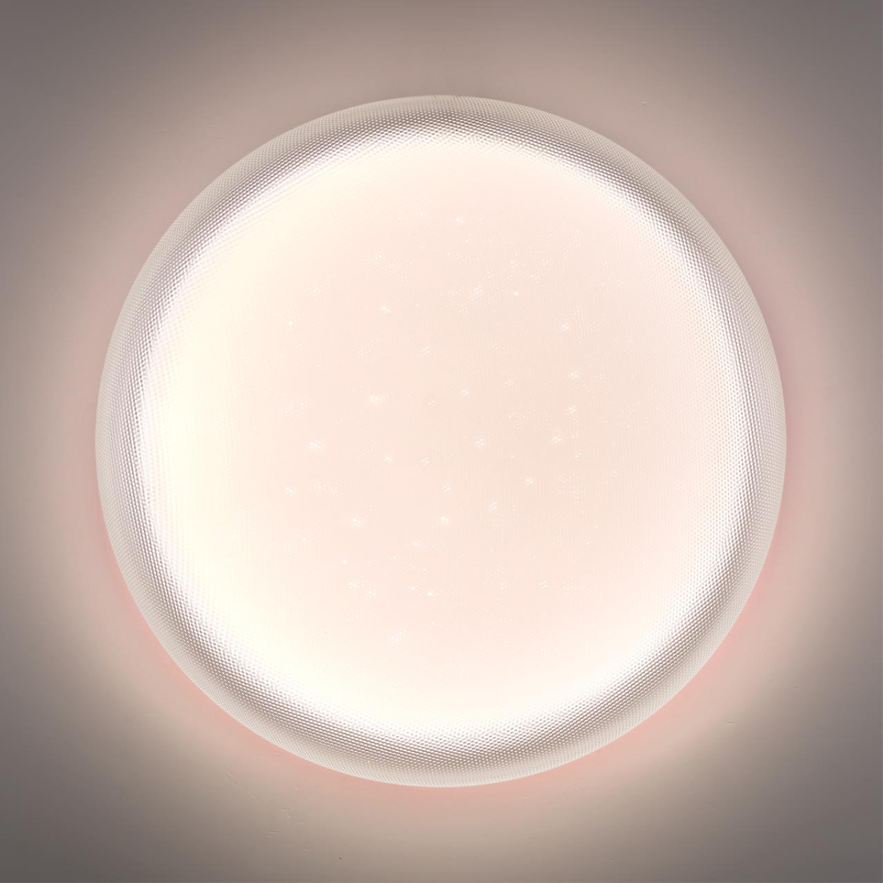 Светильник 7775/ELN линии JOLLY состоит из металлического основания (базы) и пластикового рассеивателя. Материал рассеивателя - высококачественный акрил белого цвета с глянцевой поверхностью, обеспечивающий светильнику равномерное рассеивание и хорошее светопропускание. Форма плафона: круглая, декорирована прозрачными точками, придающими включенному светильнику красивый эффект "звездного мерцания" и переливания. Степень защиты IP43 позволяет использовать светильник в определенных зонах влажных помещений. В комплект входит LED модуль с линзами, мощностью 76Вт, которая соответствует лампе накаливания 740Вт. А также переключатель температуры цвета (ССT) на драйвере, с помощью которого осуществляется изменение цветовой температуры 3000/4000/6000К и переход светильника в режим теплого/белого/холодного света. Для установки необходимого режима рекомендуется использовать удлиненный тонкий предмет типа небольшой отвертки. Данную модель 7775/ELN с быстрой доставкой спешите купить в магазине 220svet.ru