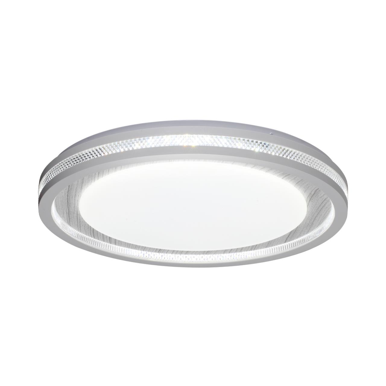 Светильник 7681/ELN линии MAVI WOOD состоит из металлического основания (базы) и пластикового рассеивателя. Материал рассеивателя - высококачественный пластик марки PMMA 2.0 белого цвета с матовой поверхностью, без текстуры. Пластик обеспечивает светильнику равномерное рассеивание и хорошее светопропускание. Форма плафона: круглая, декорирована ободом из пластика светло-серого цвета "под дерево" с прозрачной вставкой "под хрусталь". Степень защиты IP43 позволяет использовать светильник в определенных зонах влажных помещений. В комплект входит LED модуль с линзами, мощностью 76Вт, которая соответствует лампе накаливания 740Вт. А также переключатель температуры цвета (ССT) на драйвере, с помощью которого осуществляется изменение цветовой температуры 3000/4000/6000К и переход светильника в режим теплого/белого/холодного света. Для установки необходимого режима рекомендуется использовать удлиненный тонкий предмет типа небольшой отвертки.