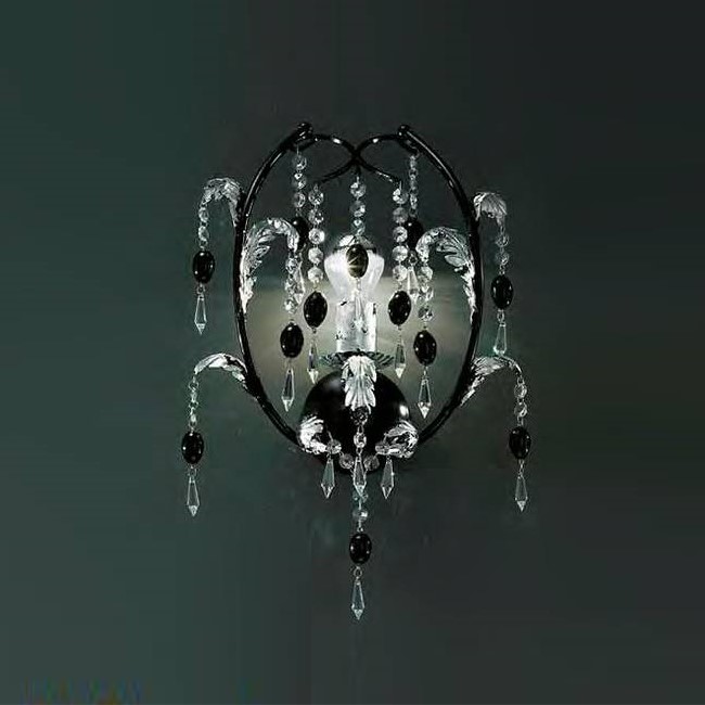 Настенный светильник MM Lampadari 6862/A1 V2468 на кованной металлической арматуре серного цвета. Декор: прозрачные подвески, камни.