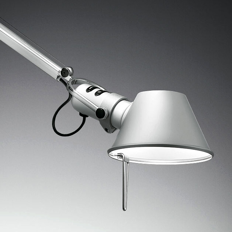 Настольная лампа Tolomeo mini — Led MWL. Система MWL (My White Light — Мой Белый Свет) сочетает преимущества LED технологий и возможность получить многочисленные вариации белого света с разной интенсивностью и цветовой температурой в диапазоне от 3200К (теплый свет) до 10000К (холодный свет). Основание и суставы корпуса из полированного алюминия, рассеиватель из анодированного матового алюминия. Система пружинной балансировки. Регулируемые размеры в зависимости от положения.