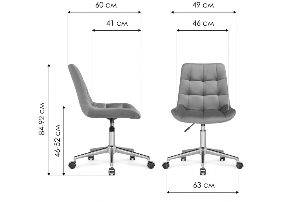 Высота спинки: 38 см. Материал каркаса - металл; Материал сиденья - велюр; Материал обивки - велюр; Цвет ножек - черный; Ширина - 49; Глубина - 60; Высота - 84; Ширина сиденья - 46; Глубина сиденья - 41; Высота сиденья - 46; Высота спинки - 38; Высота максимальная - 92;