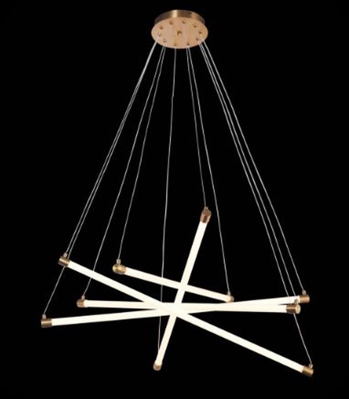 Светильник оснащен 5 светодиодными лампочками, что обеспечивает достаточное освещение для площади от 15 до 20 квадратных метров. Высота данной модели составляет 1200 мм, диаметр 830 мм. Наша люстра это не только источник света, но и стильный акцент, который придаст вашему помещению уют и изысканность.