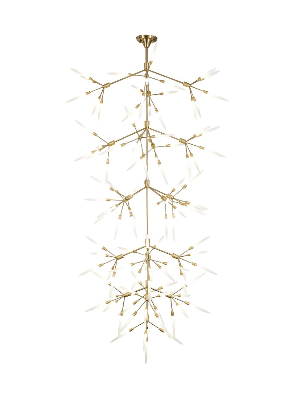 Эта люстра сочетает в себе стиль и функциональность. Лампы G4 подойдут для экономной светодиодной подсветки, обеспечивая при этом необходимую яркость. Благодаря использованию акрила и прочной арматуры, люстра прослужит вам долгие годы, сохраняя свой оригинальный вид. Высота данной модели 2400 мм, диаметр 1100 мм, что позволяет осветить пространство площадью от 30 до 40 квадратных метров. Количество ламп - 105 штук.