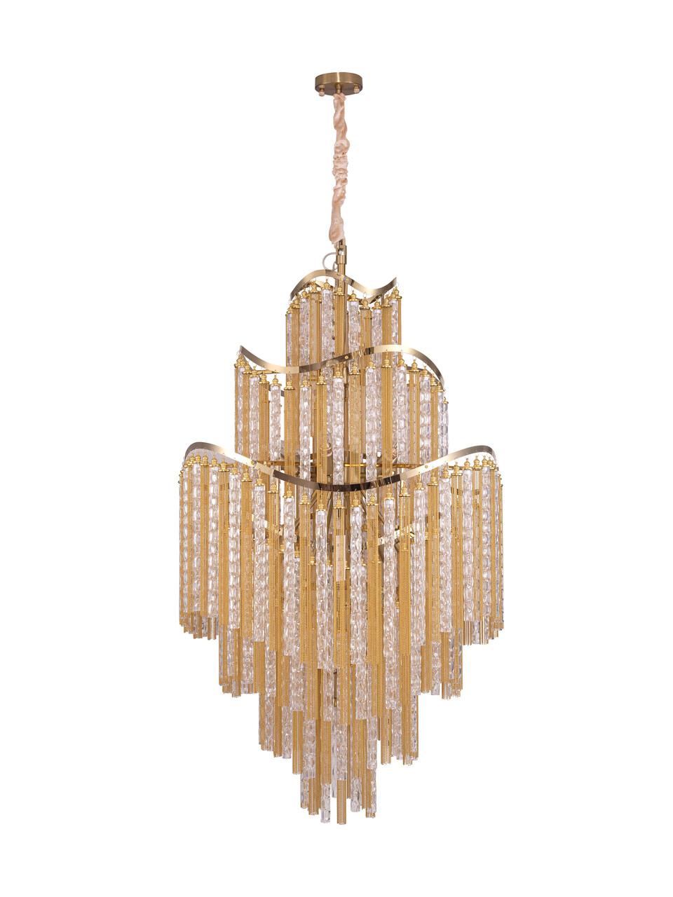 Подвесная люстра F0524-30 в стиле неоклассика с золотистыми элементами - отличное решение для освещения помещений площадью от 20 до 25 квадратных метров. Изготовлена из качественных материалов, таких как нержавеющая сталь, что обеспечивает долгий срок службы изделия. Люстра оснащена 22 лампами с цоколем E14 для установки светодиодных лампочек или ламп накаливания, что обеспечивает яркое и экономичное освещение. Высота составляет 1200 мм, диаметр - 600 мм. Цвет арматуры - золото. Эта подвесная люстра подойдет для интерьера в стиле неоклассика и станет эффектным дополнением к вашему домашнему пространству.