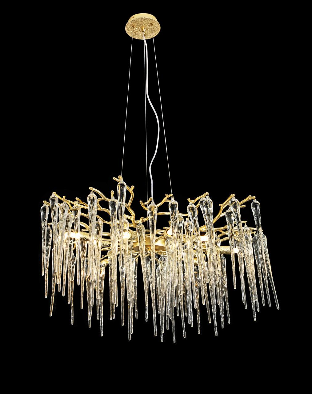 Высота изделия 1500 мм, диаметр 1000 мм, что позволяет осветить пространство от 25 до 30 квадратных метров. Количество ламп - 14 штук с цколем G9. Люстра выполнена в элегантном золотом цвете и дополнена элементами из прозрачного хрусталя, который подчеркнёт вашу изысканность и вкус. Металлическая арматура обеспечивает долговечность и устойчивость конструкции, а светодиодные лампы равномерно рассеивают свет, создавая комфортное освещение. Благодаря использованию светодиодных ламп вы сможете значительно сэкономить на электроэнергии, не теряя при этом яркости света.
