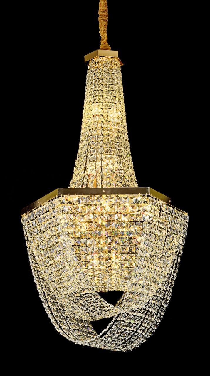Если вы хотите купить подвесную люстру с доставкой и добавить нотку элегантности в ваш интерьер, наша модель F3624-04 — идеальный выбор. Эта люстра в неоклассическом стиле украсит любое пространство, будь то гостиная, спальня или столовая. Она изысканно сверкает благодаря хрусталю и золотистой арматуре, создавая атмосферу роскоши и уюта. Модель оснащена 12 лампами с цоколем Е14, которые обеспечивают яркое и экономичное освещение, идеально подходя для площади от 10 до 20 квадратных метров. Диаметр люстры составляет 600 мм, максимальная высота 1700мм, при этом длину подвеса можно отрегулирвать, что позволяет выбрать оптимальный вариант под ваши потолки.