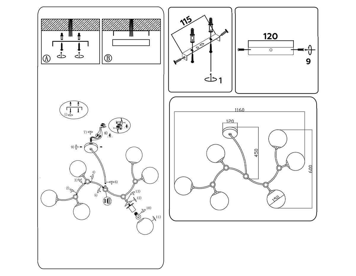 - Место установки: на потолок