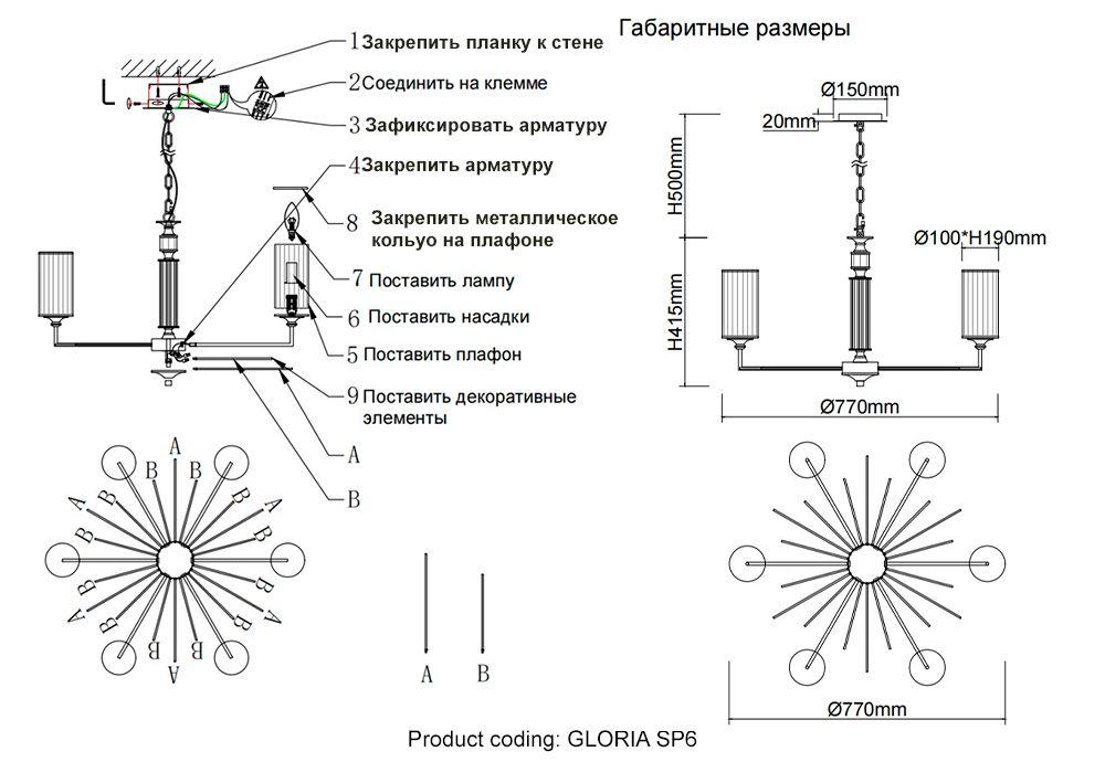 - Количество ламп: 6 шт
