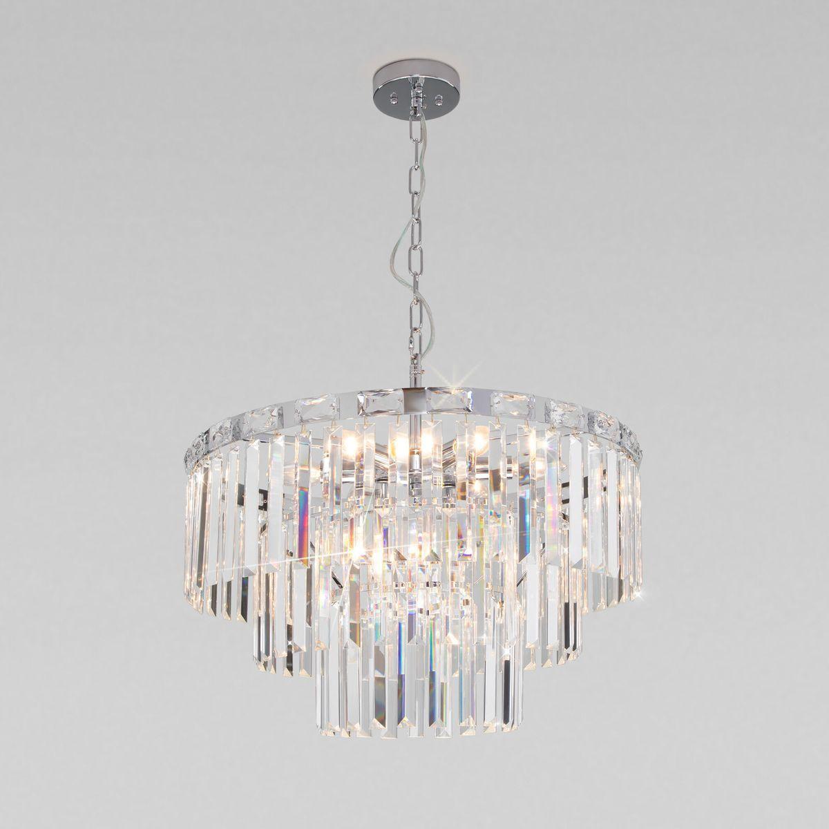 Подвесная люстра Eurosvet 10130/8 хром/прозрачный хрусталь Strotskis в Томск