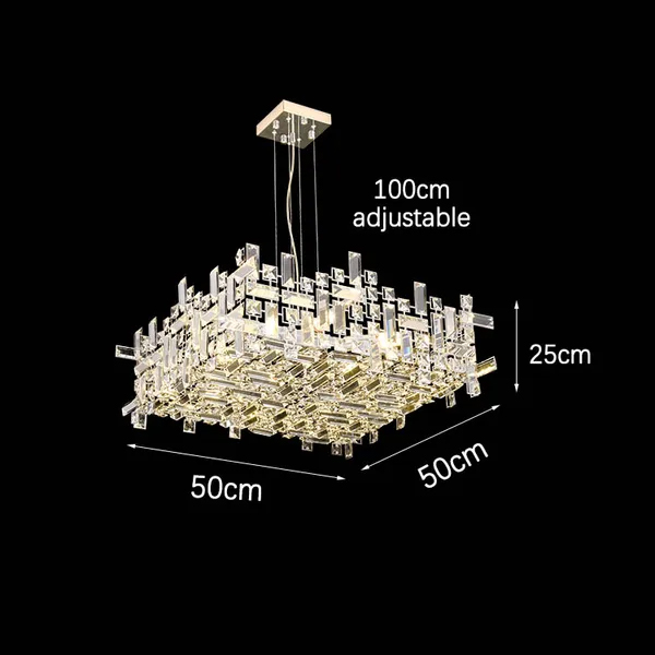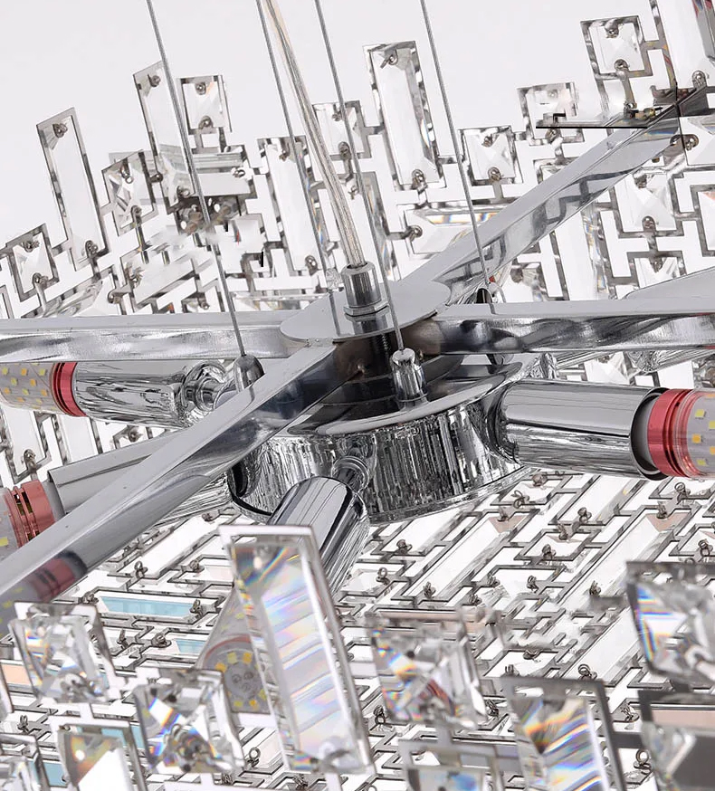 Люстра Delight Collection P7838-W50 chrome с плафоном из множества прямоугольных и квадратных прозрачных кристаллов на металлическом каркасе. Основание из хромированного металла.