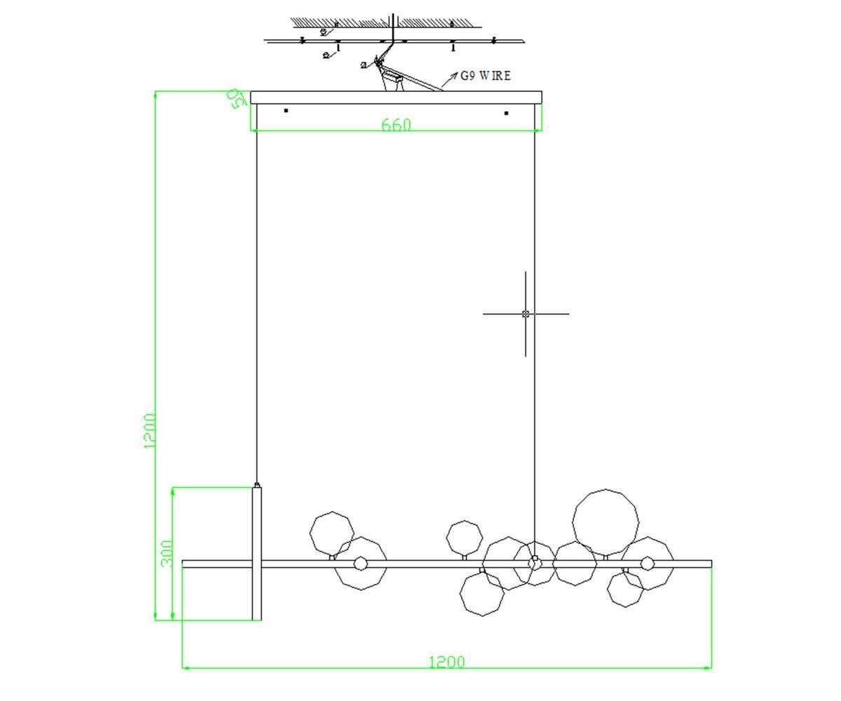 Люстра Иона черный w120*28 h200 G9 50W+Led 17W (4000K) (Led лампы в комплекте 4000К)