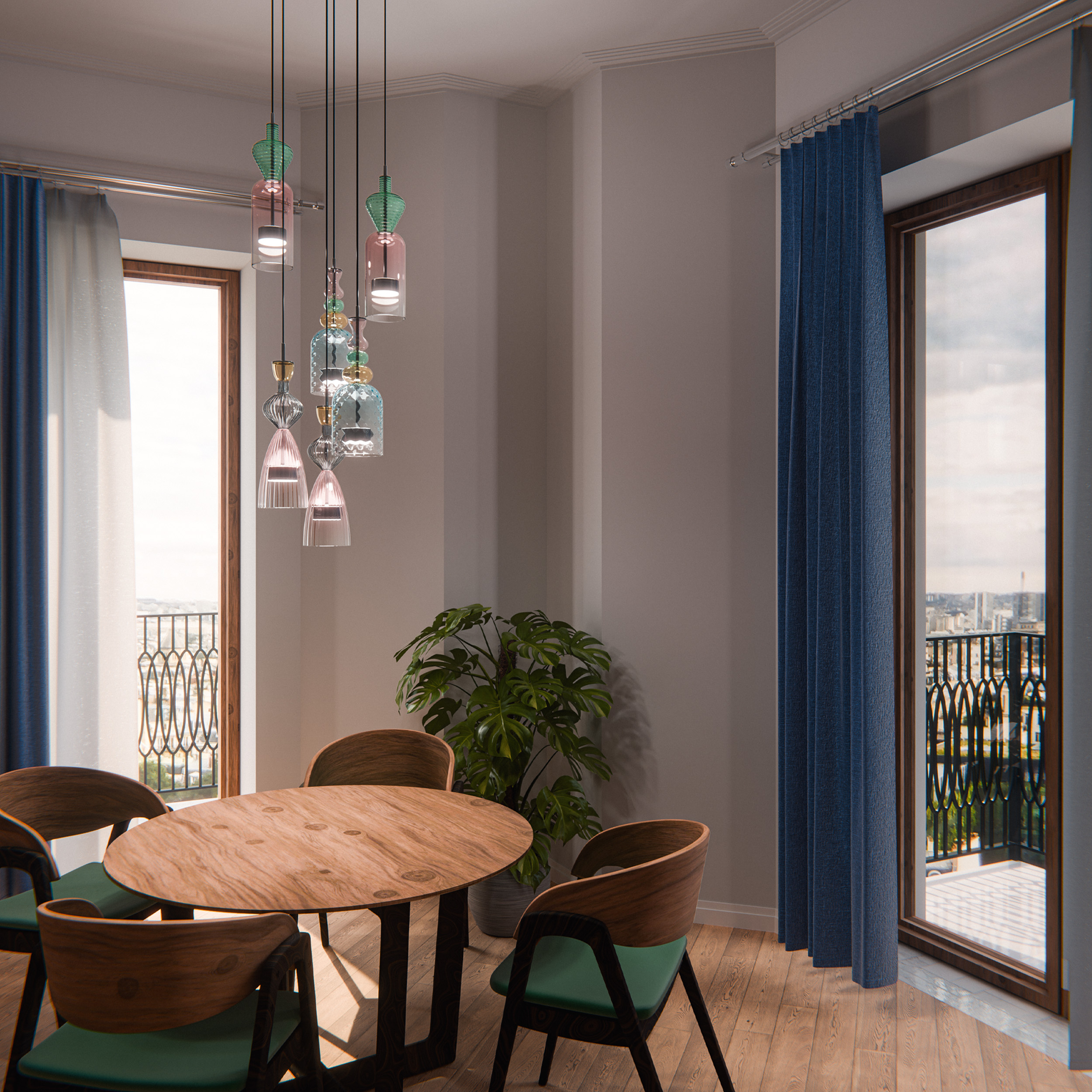- Цвет плафонов: Разноцветный