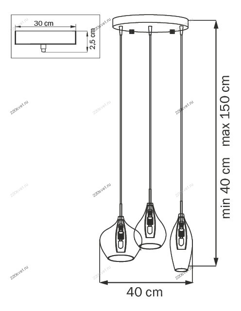- Количество ламп: 3 шт