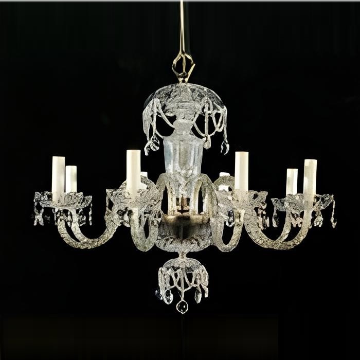 Люстра 8-ми рожковая на хромированной арматуре с хрустальной вазой и чашечками. Декор: хрустальные подвески и кристаллы Swarovski Spectra на арматуре. Высота светильника регулируется за счет звеньев цепи.
